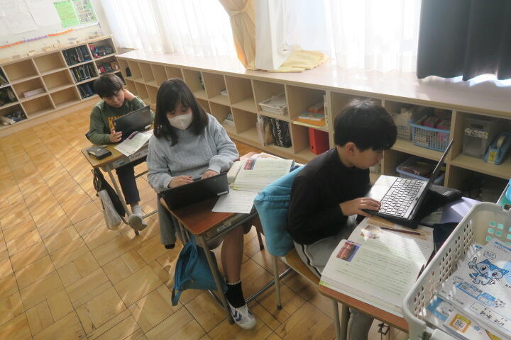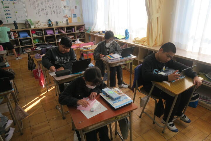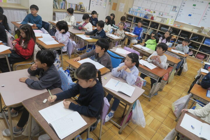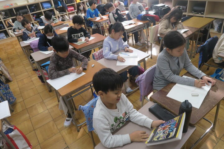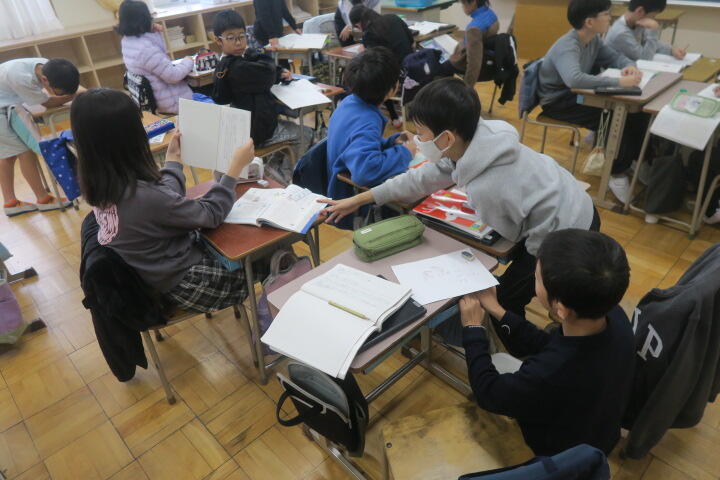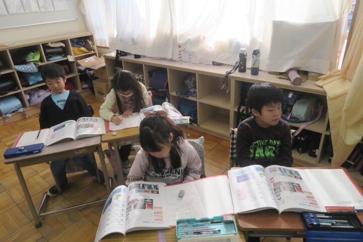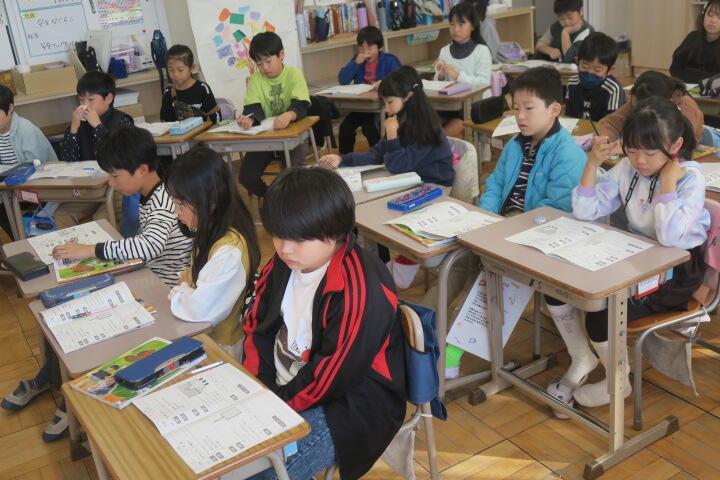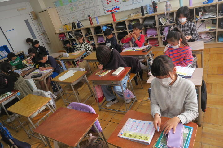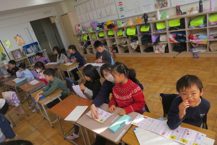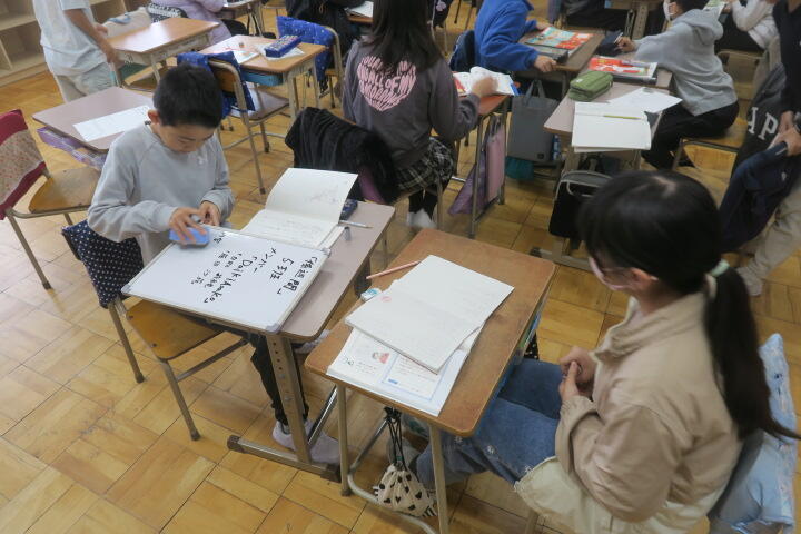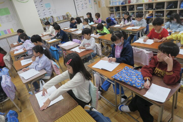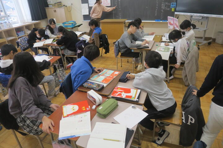 テストが終わった後、間違えやすい漢字の確認をしていました。