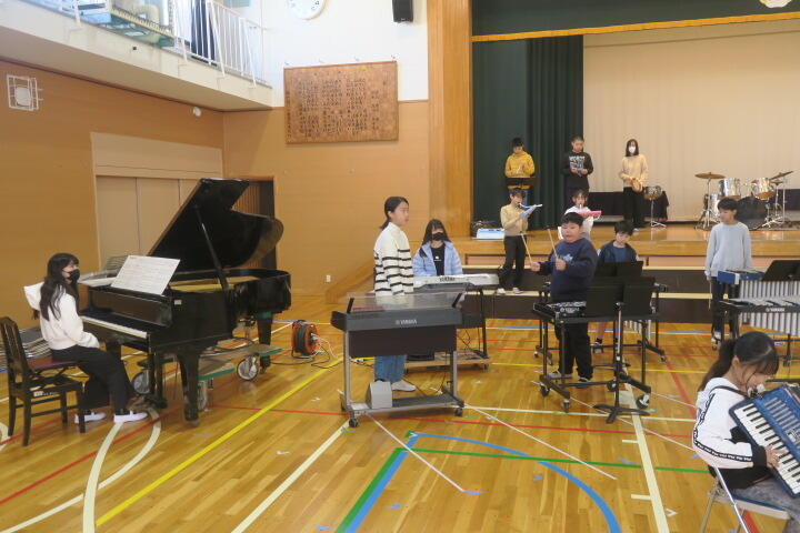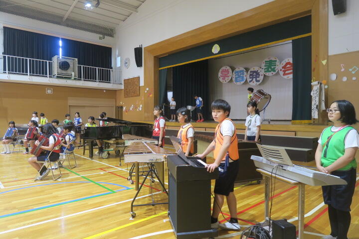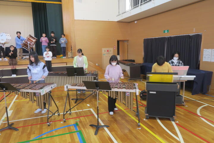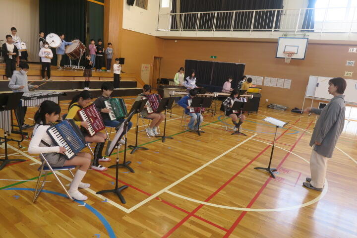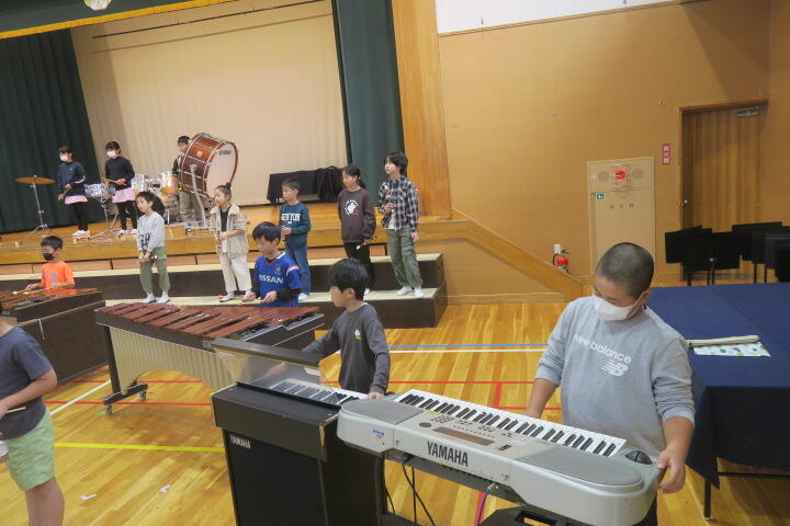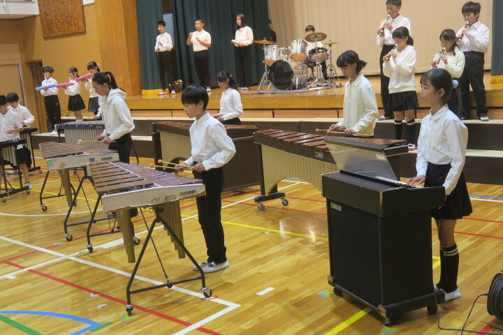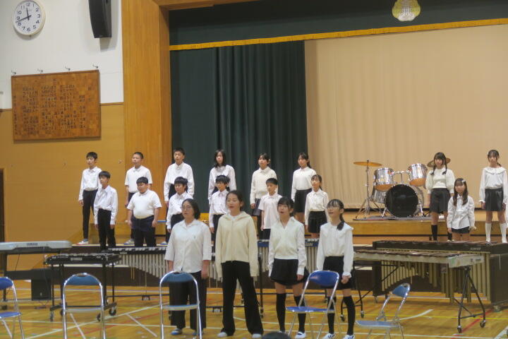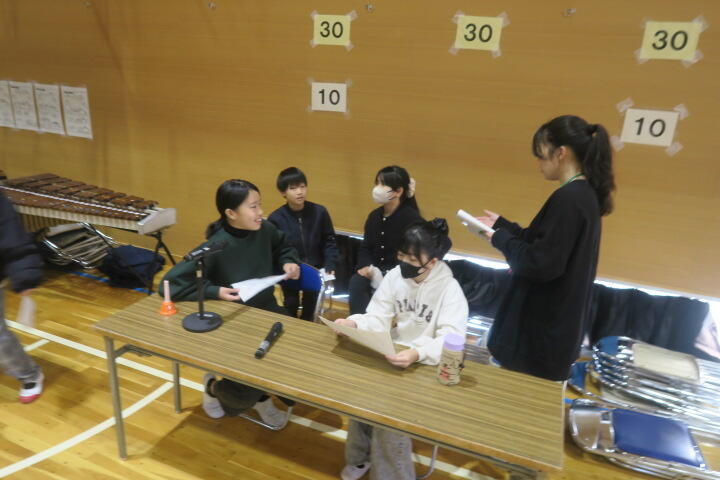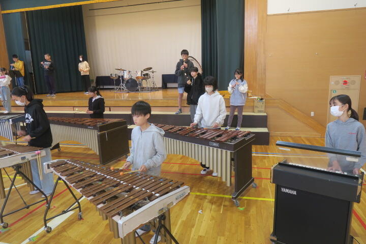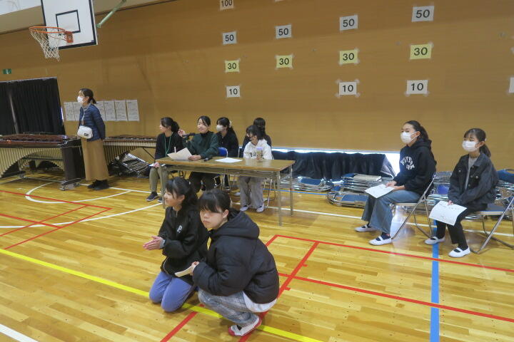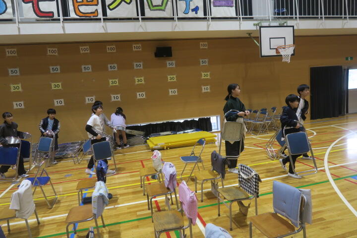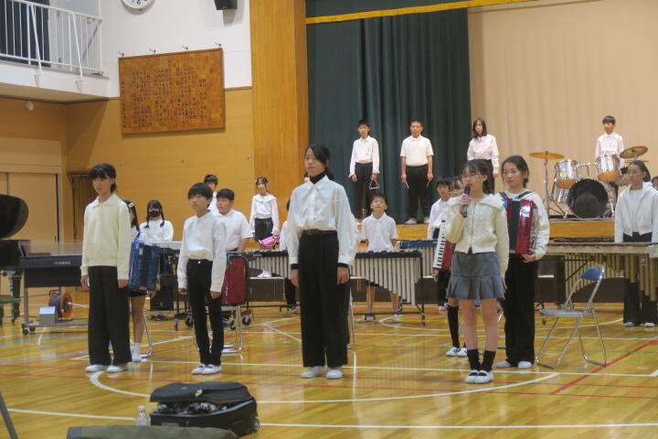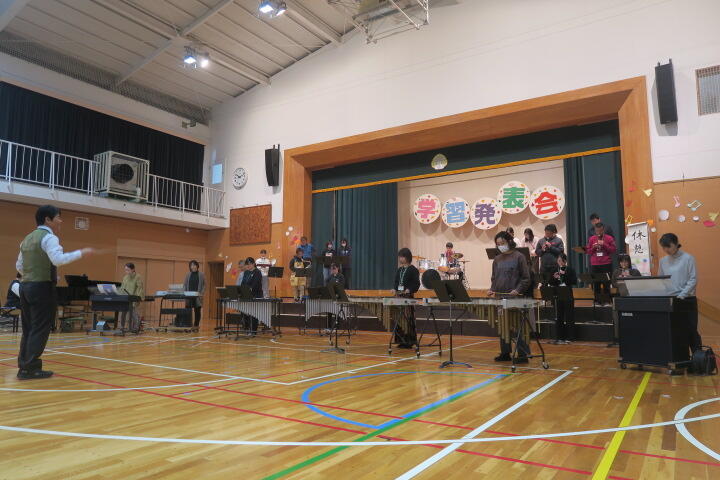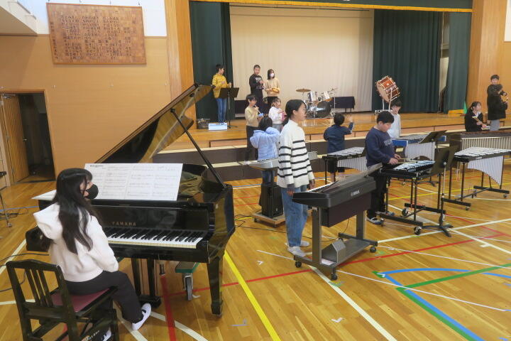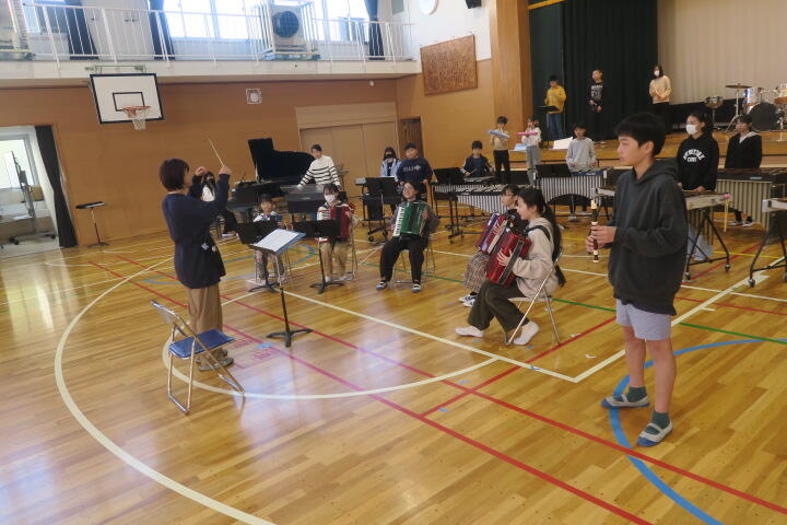 体育館で合奏と合唱の練習を本番通りに行っていました。