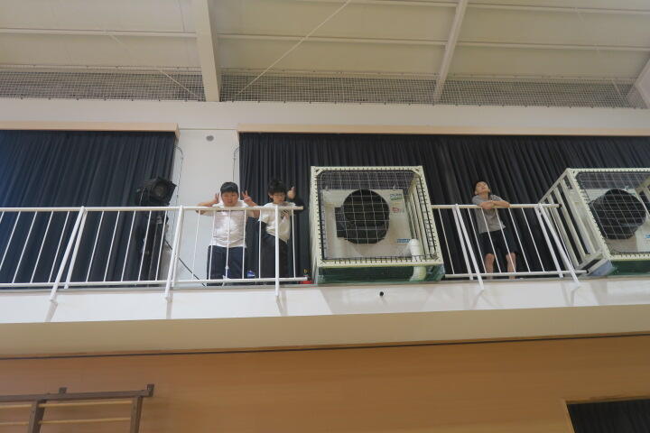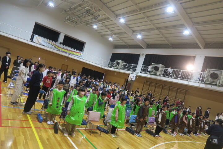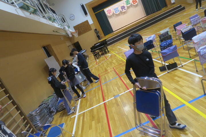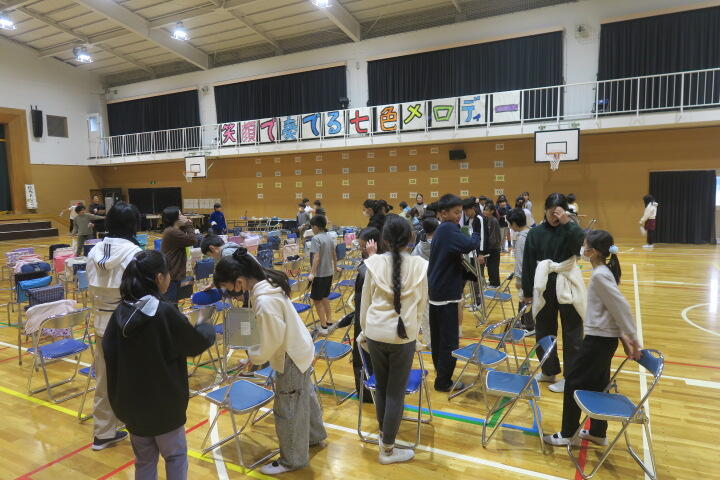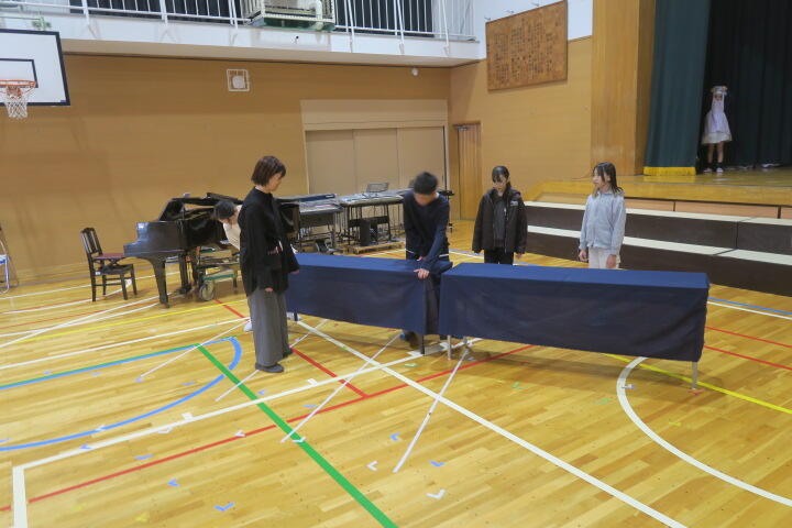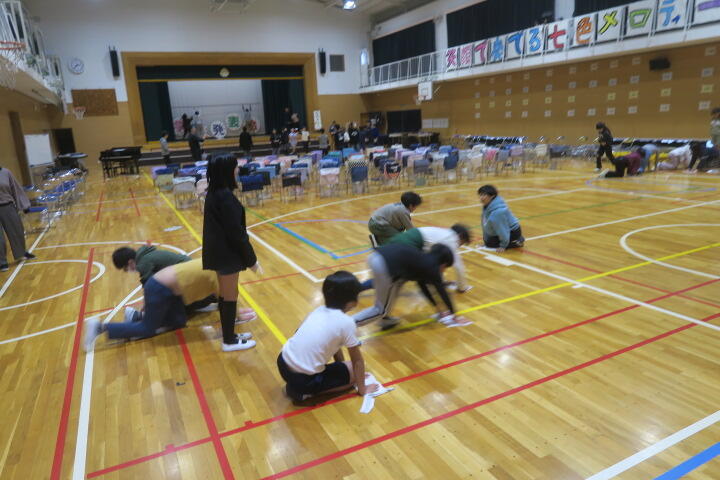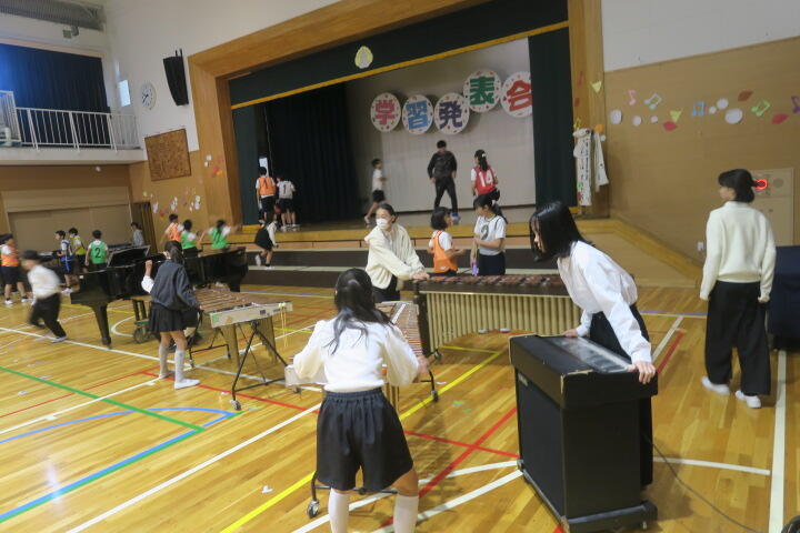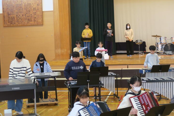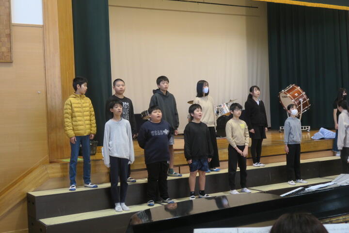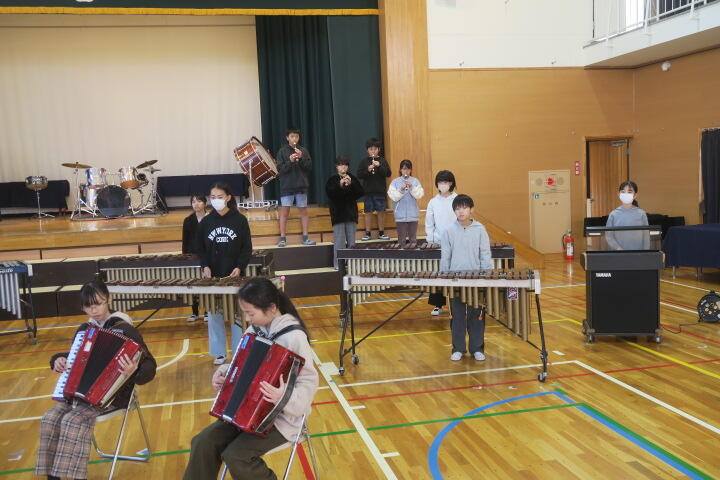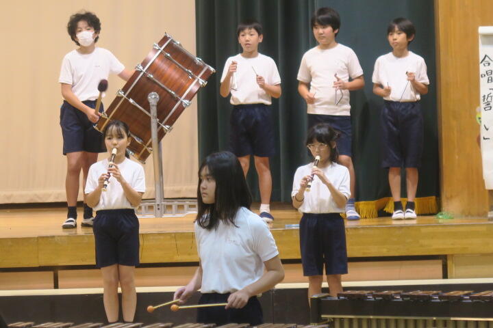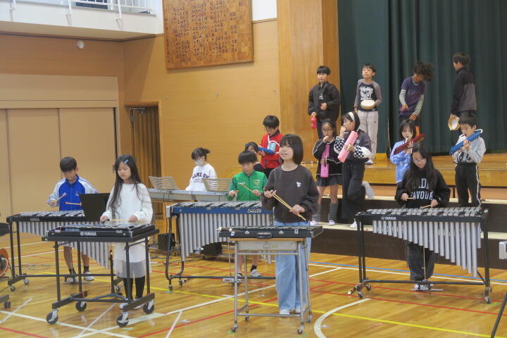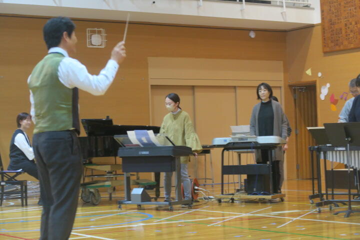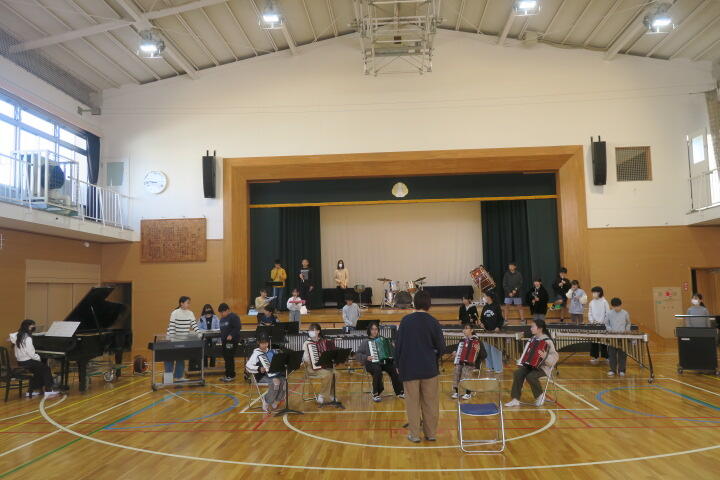 体育館で合奏と合唱の練習を本番通りに行っていました。