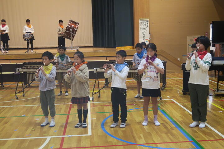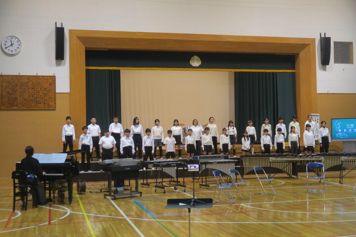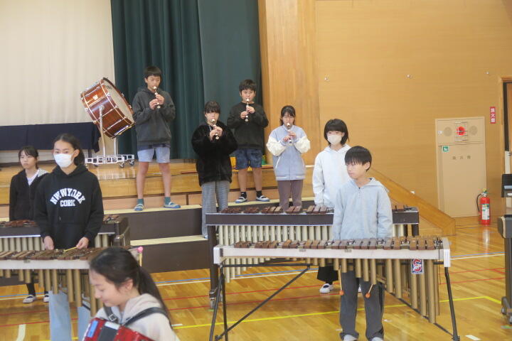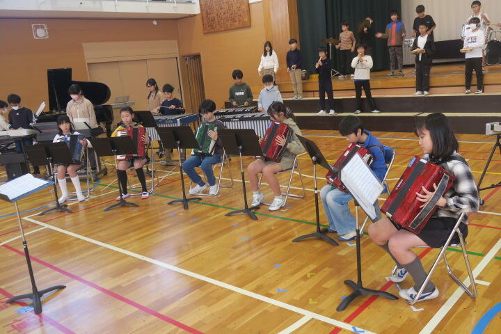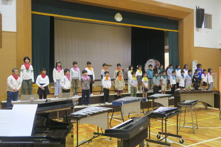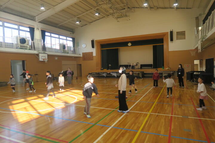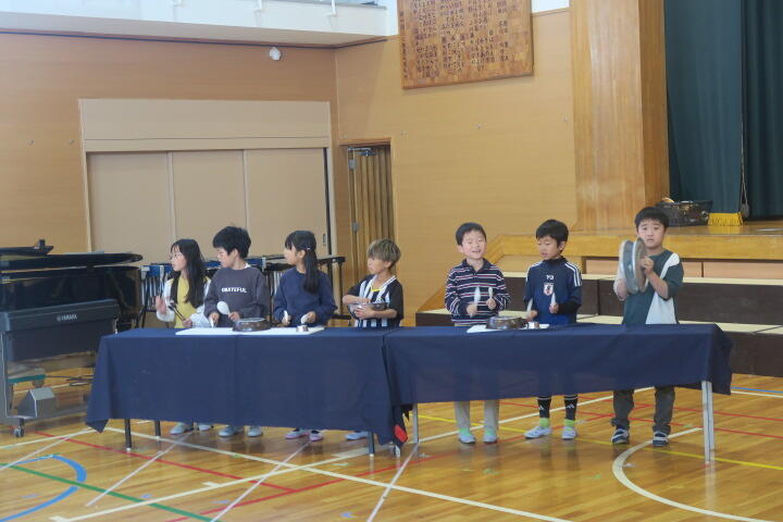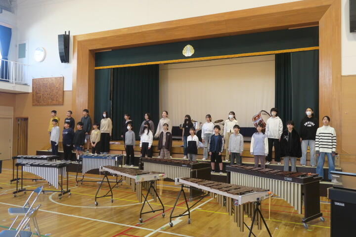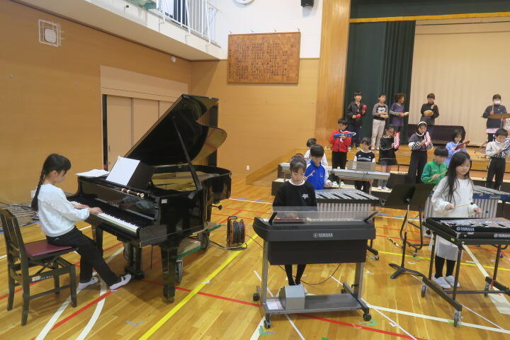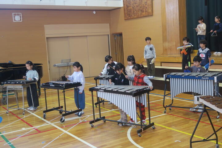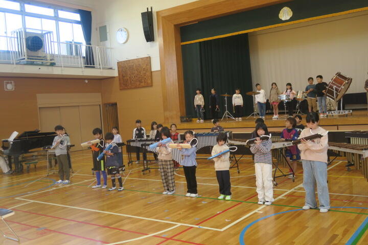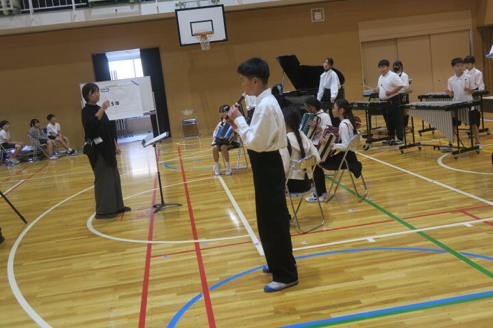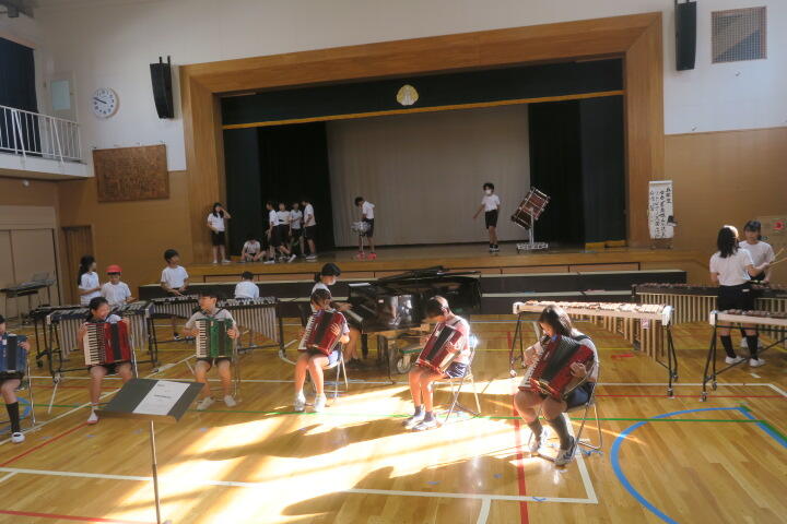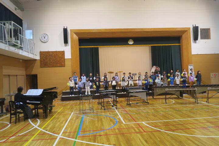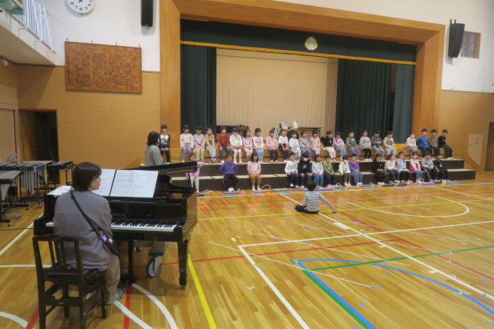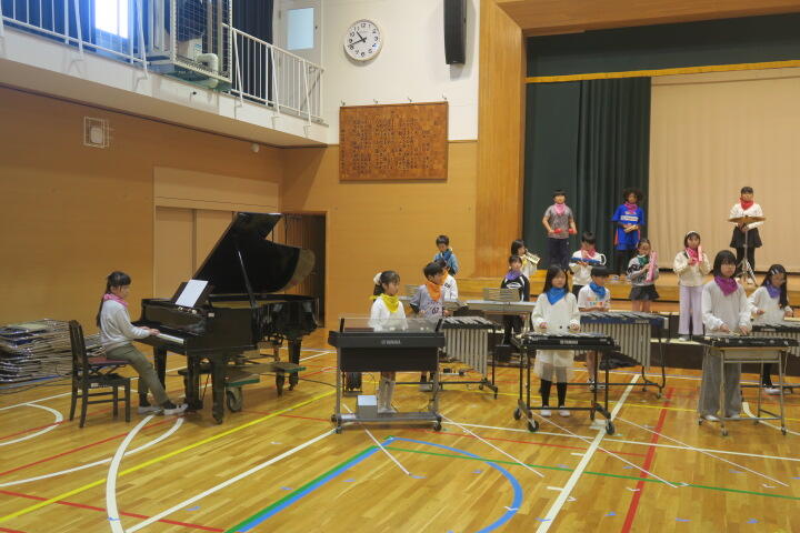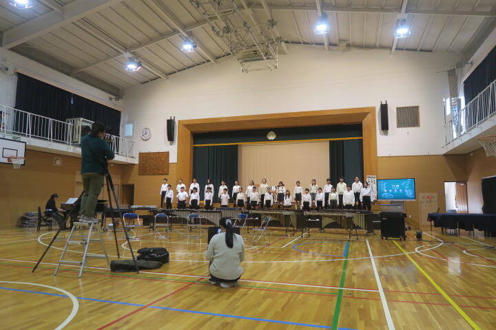 体育館で鍵盤ハーモニカの演奏をしているところでした。
