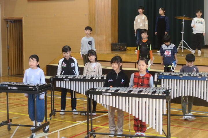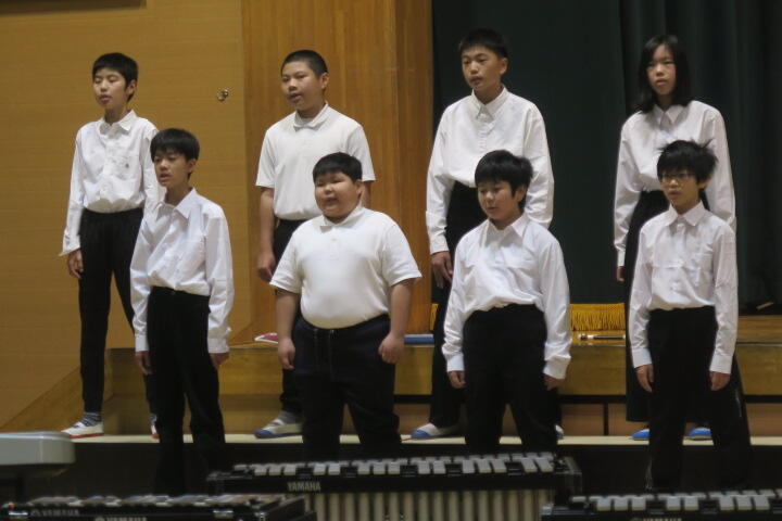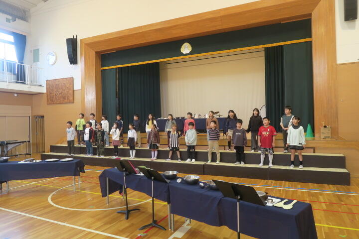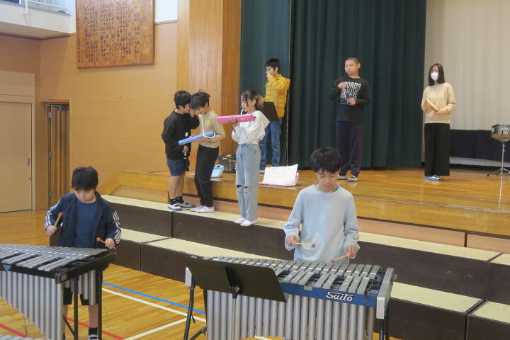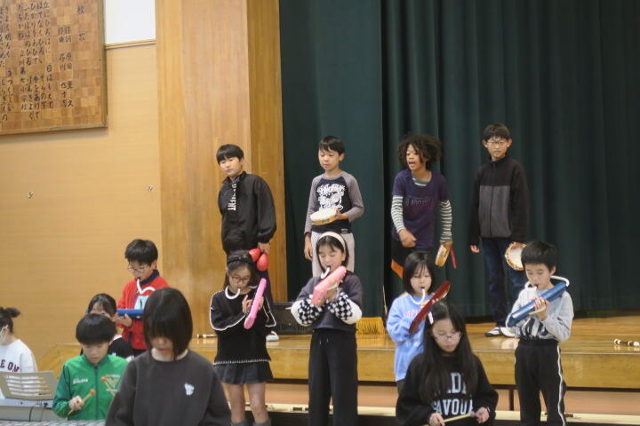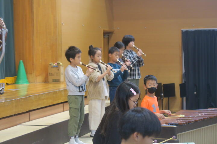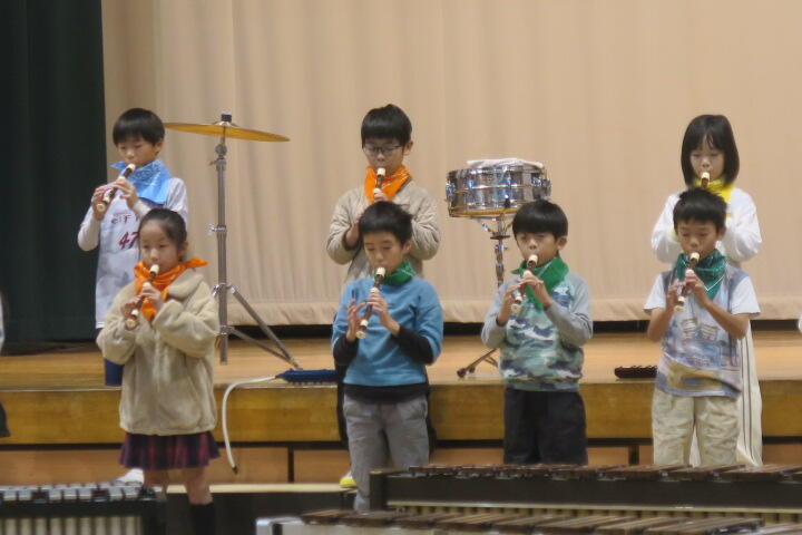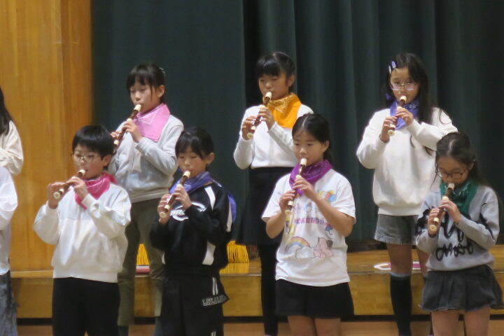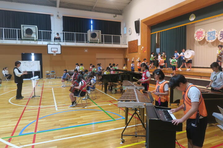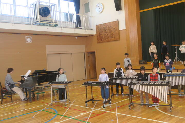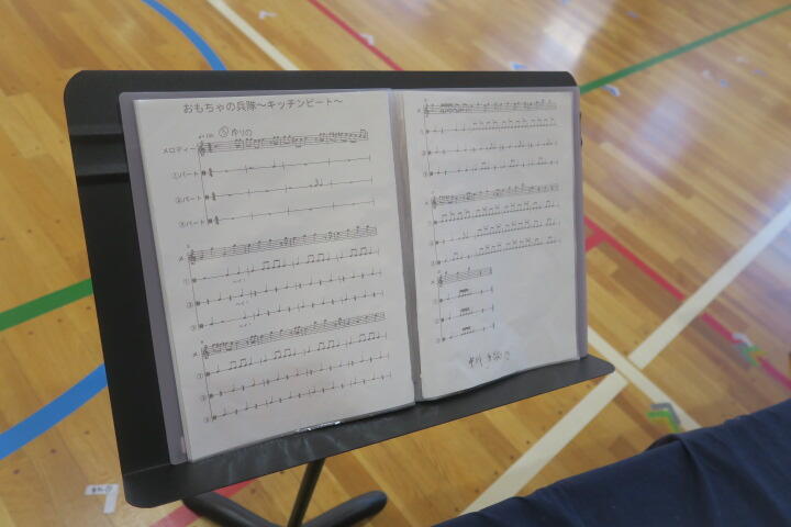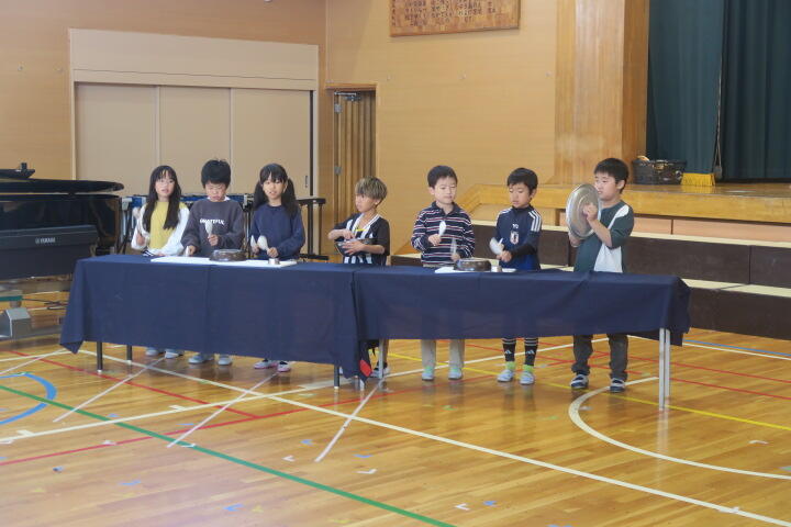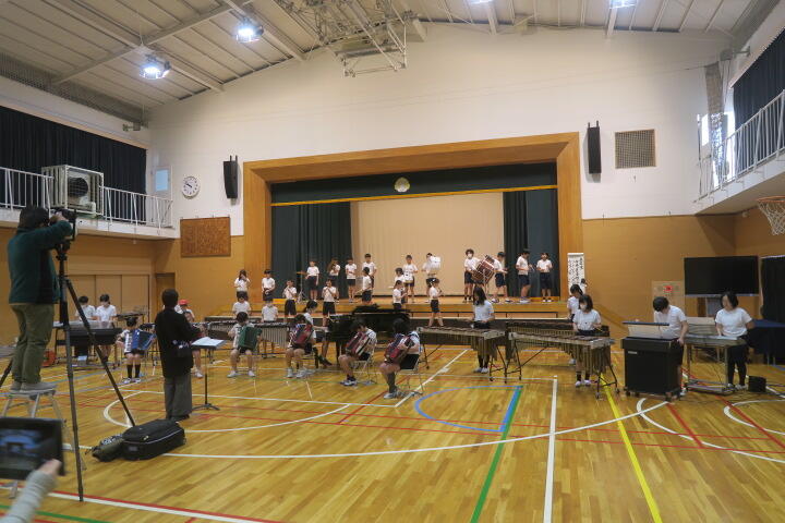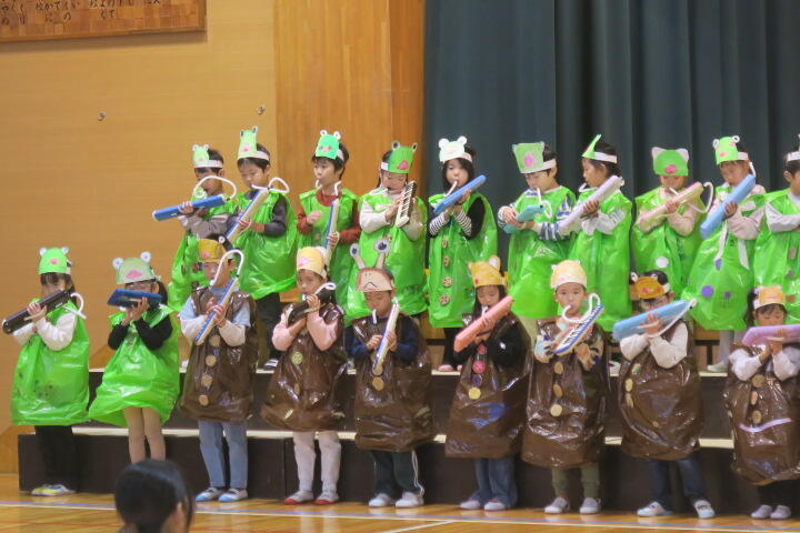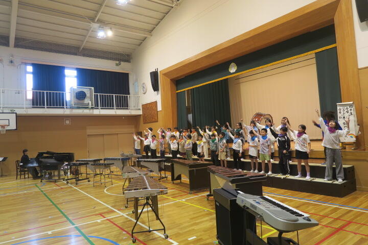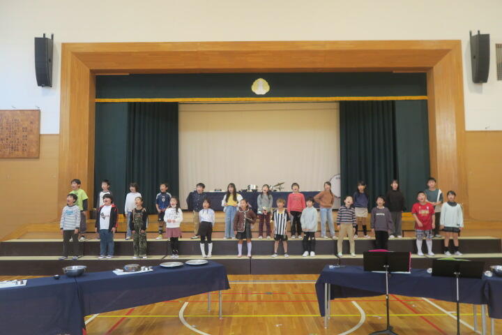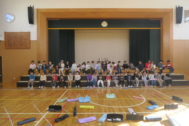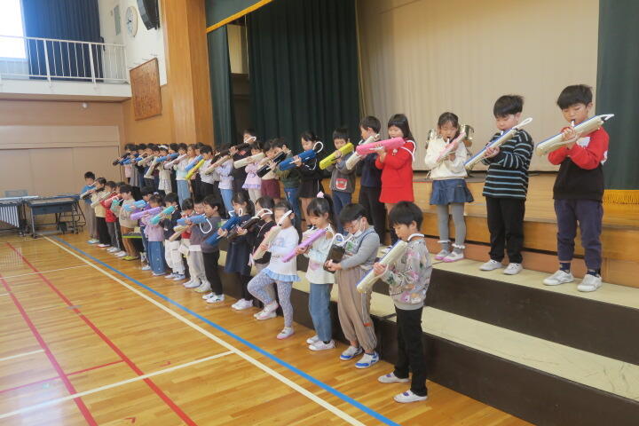 体育館で鍵盤ハーモニカの演奏をしているところでした。