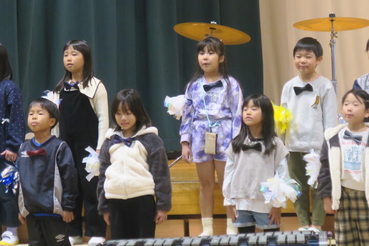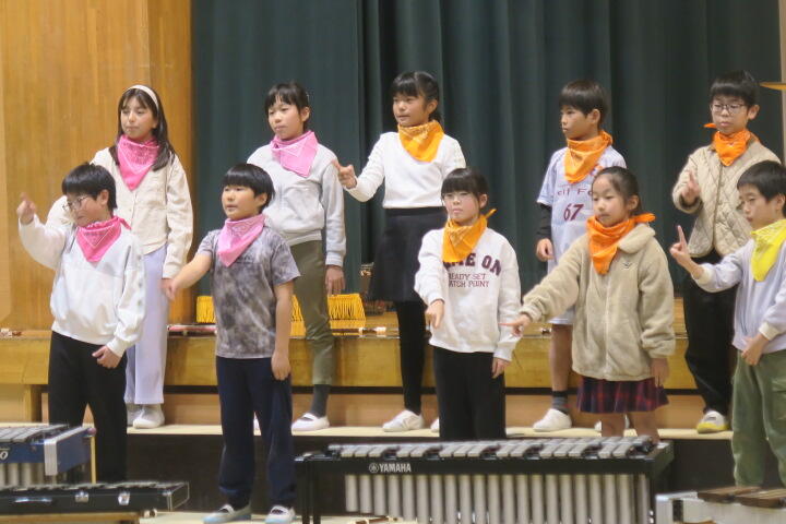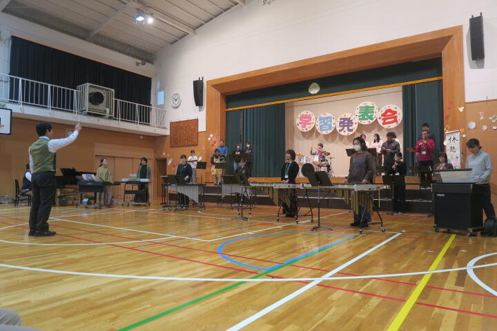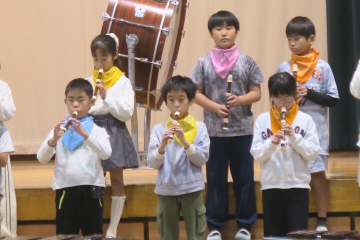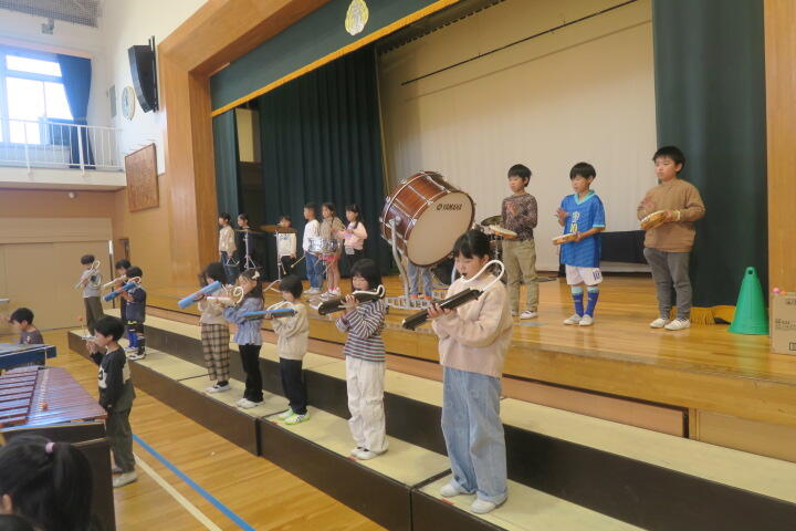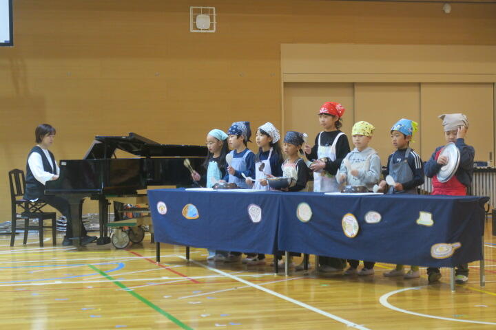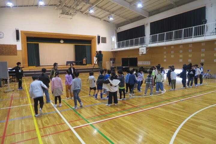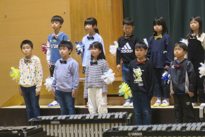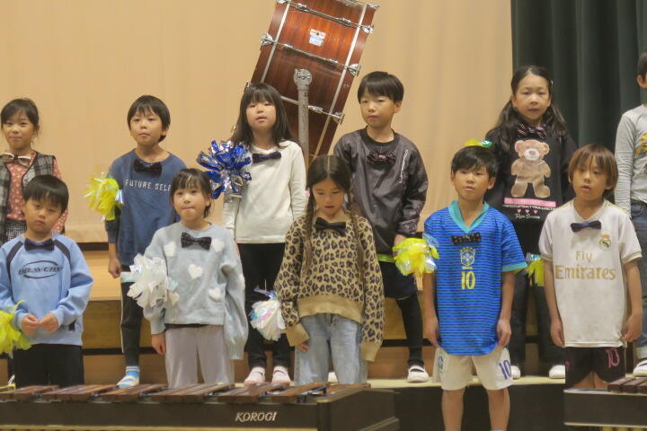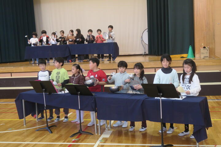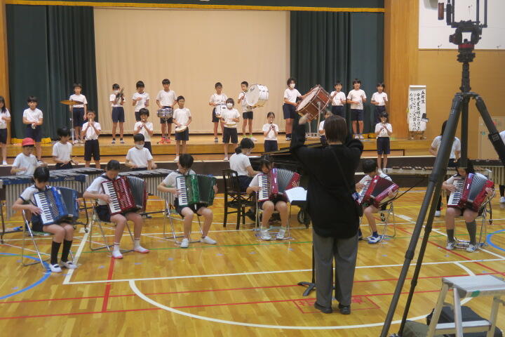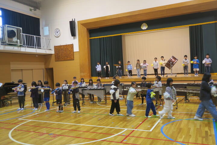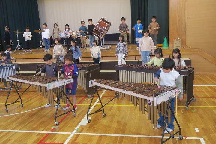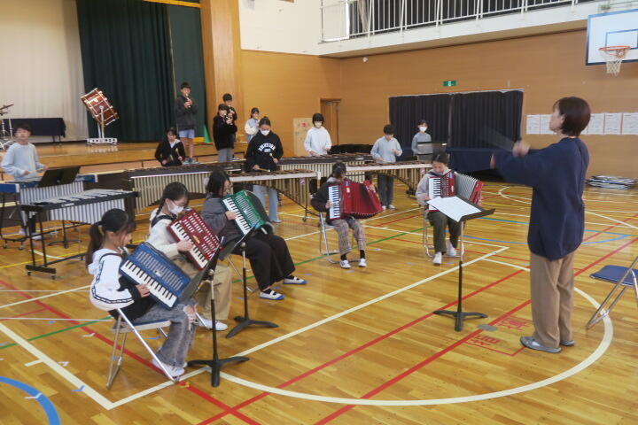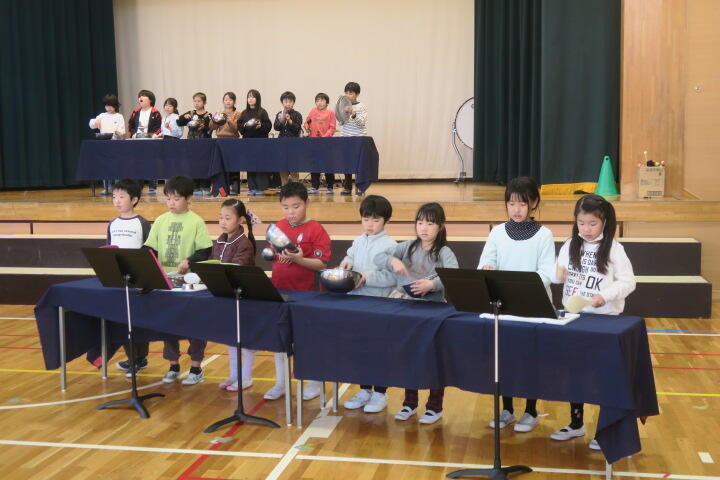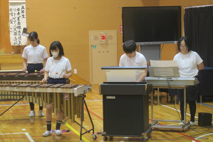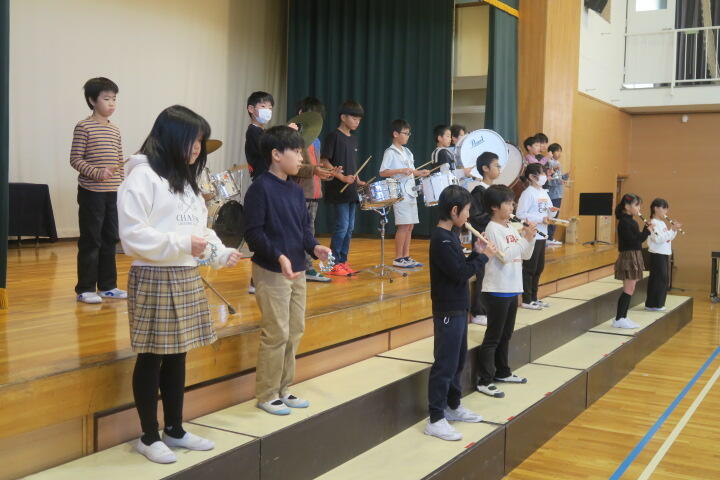 体育館で鍵盤ハーモニカの演奏をしているところでした。