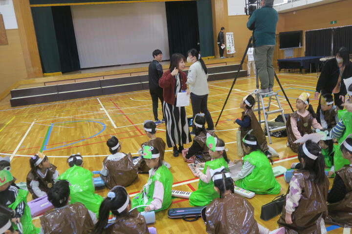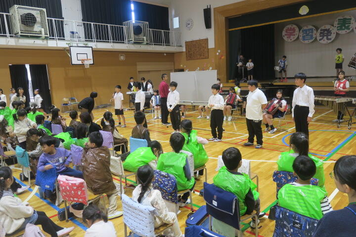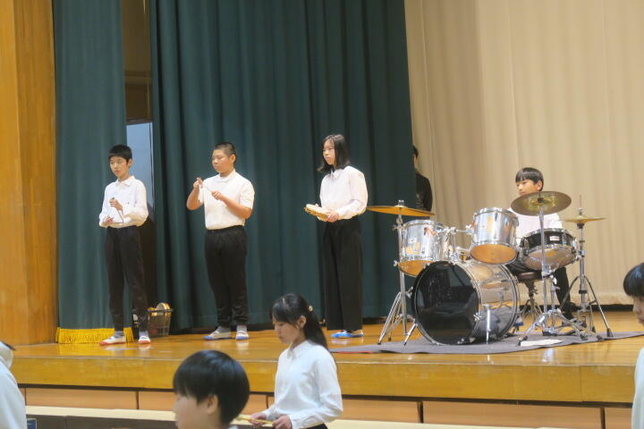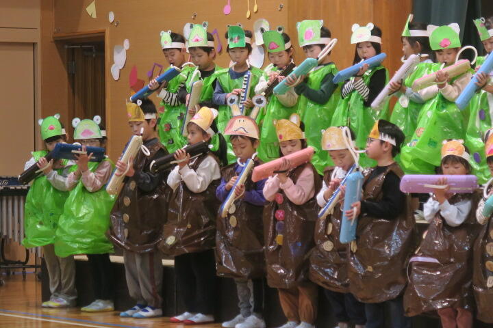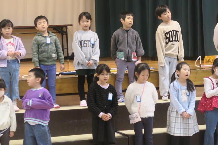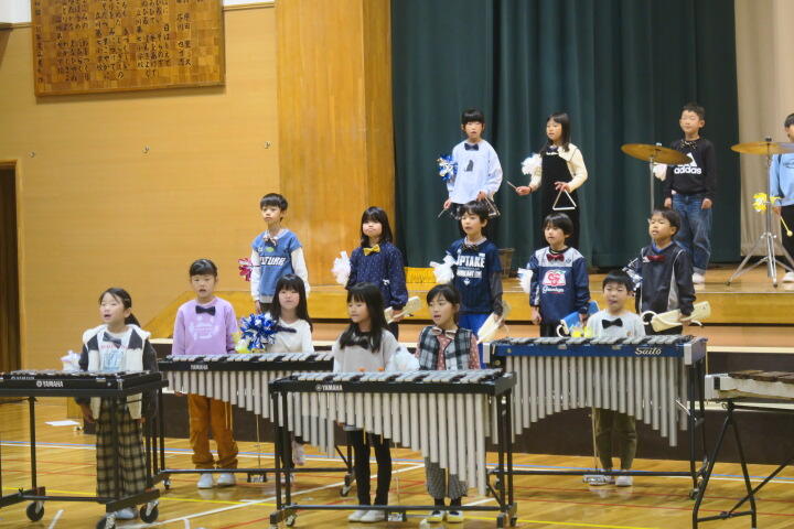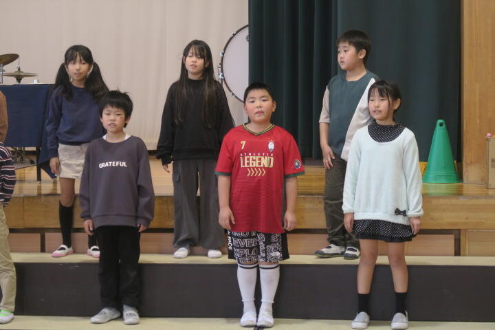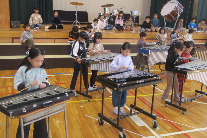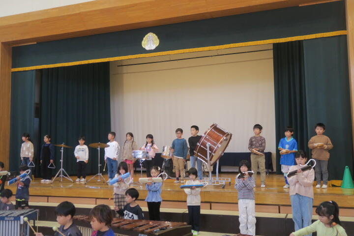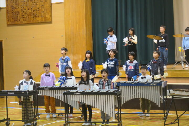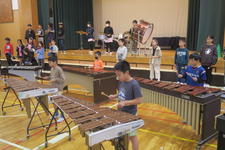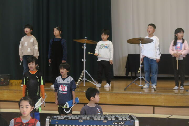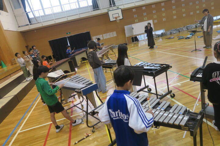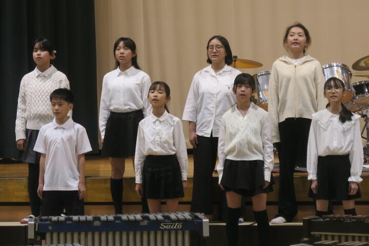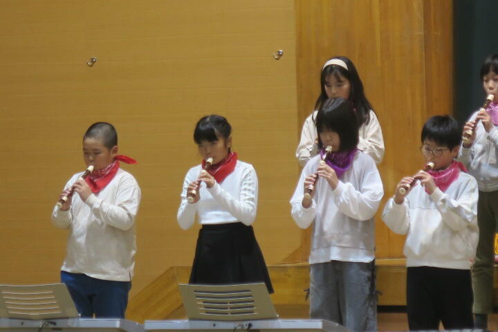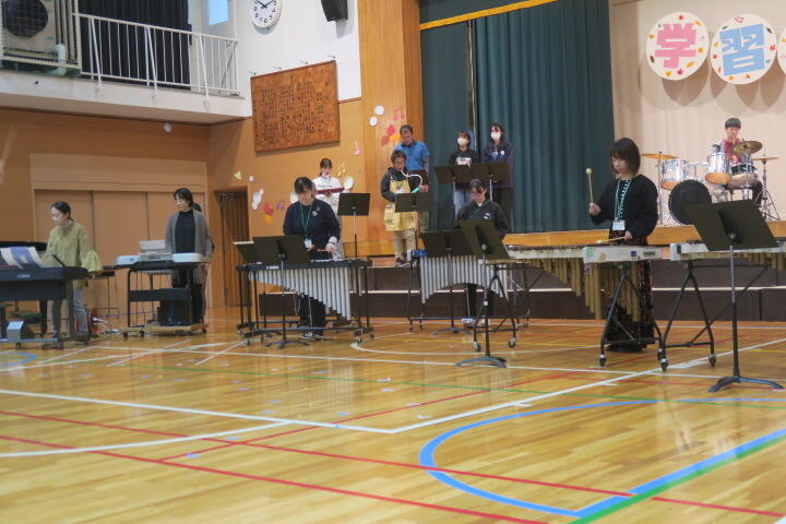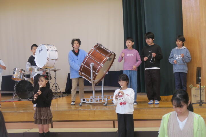 体育館で鍵盤ハーモニカの演奏をしているところでした。