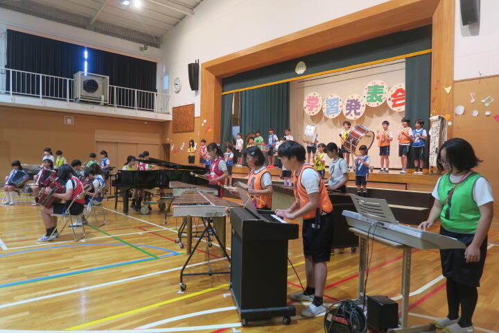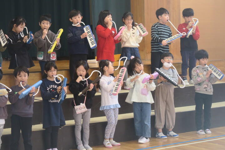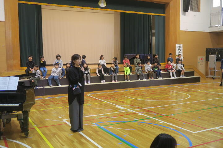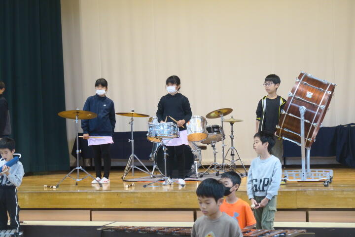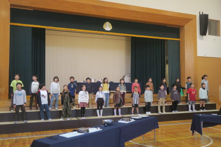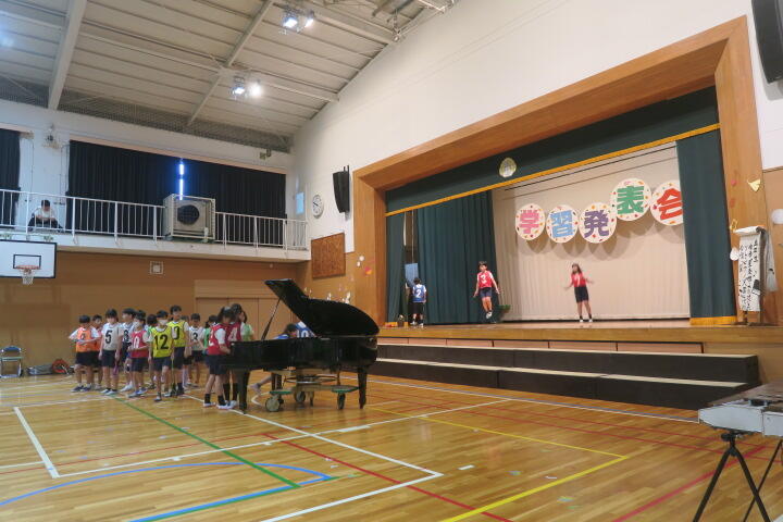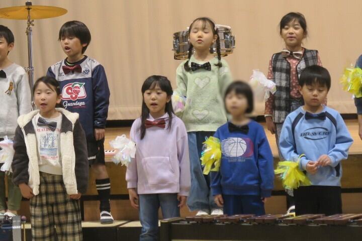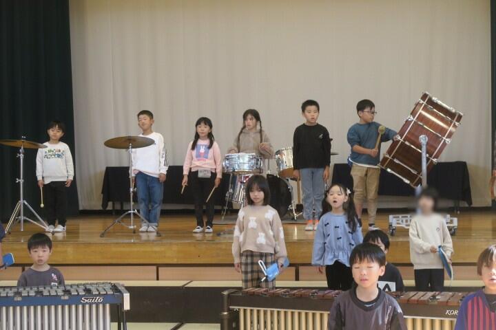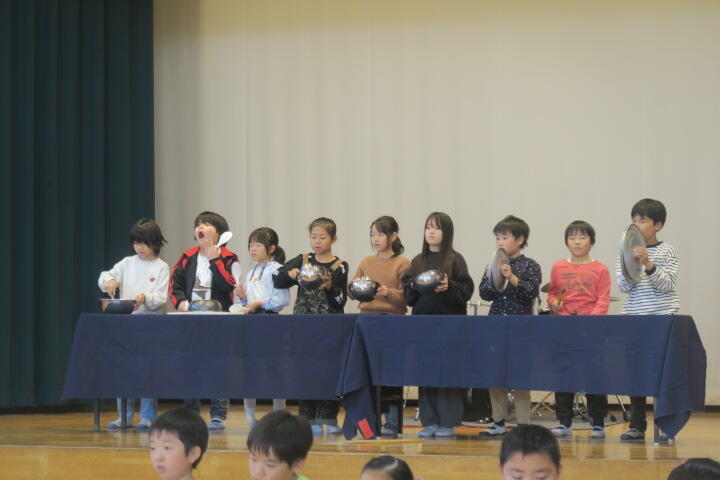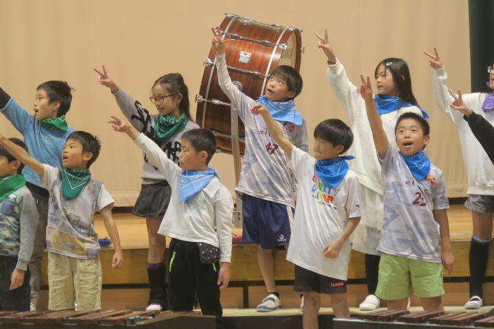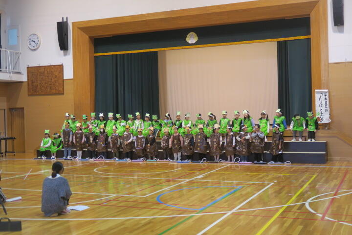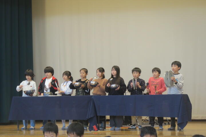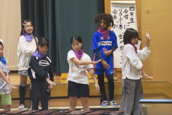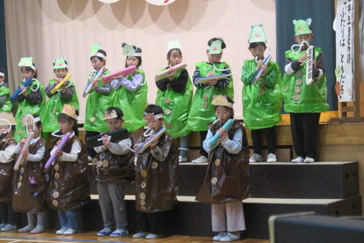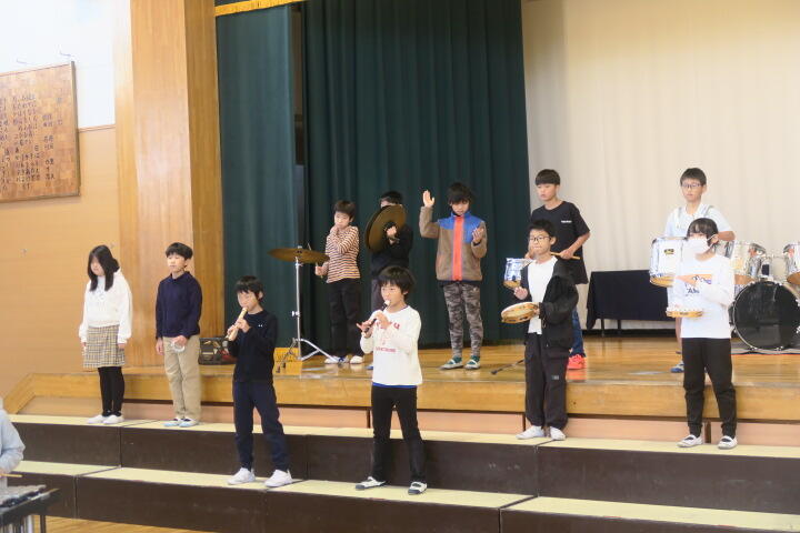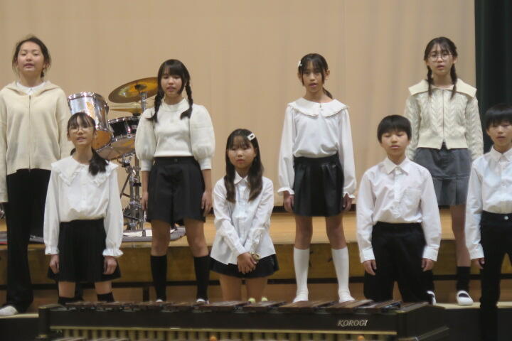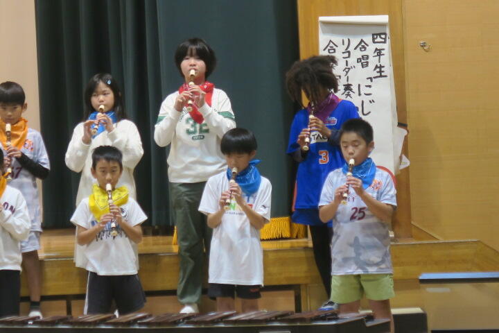 体育館で鍵盤ハーモニカの演奏をしているところでした。