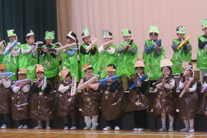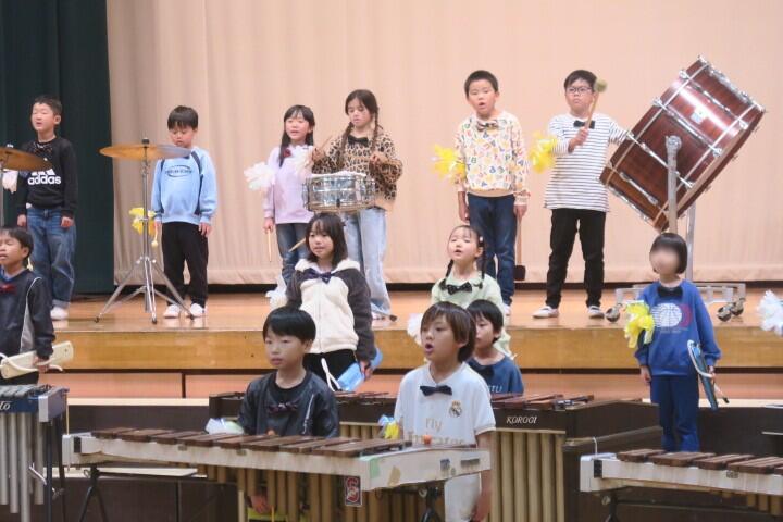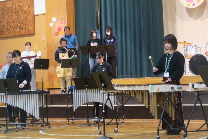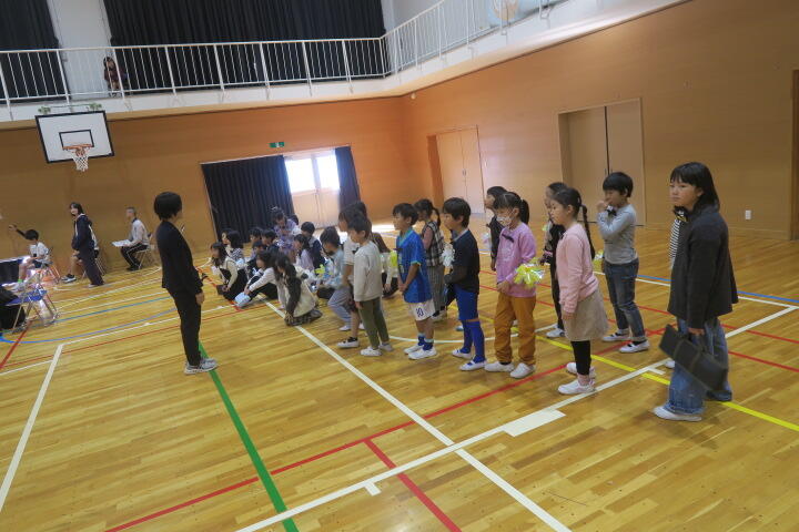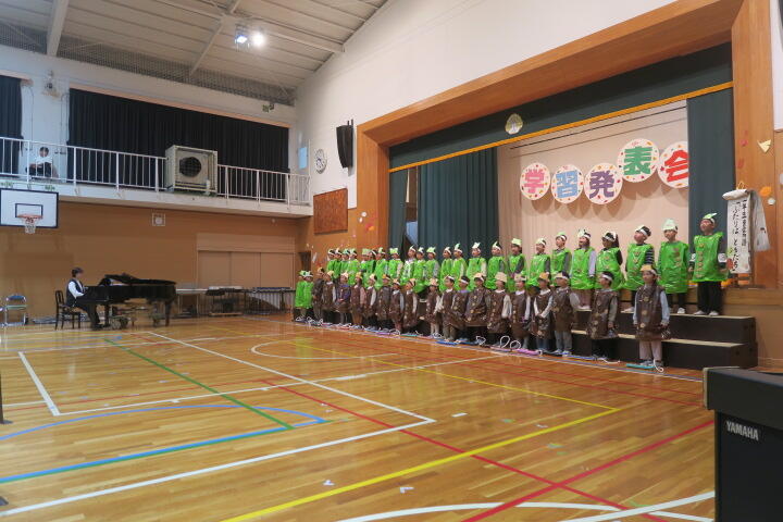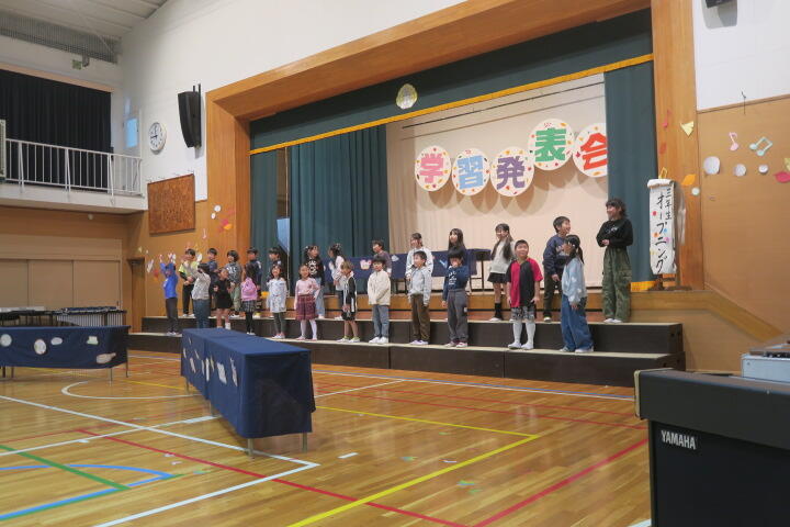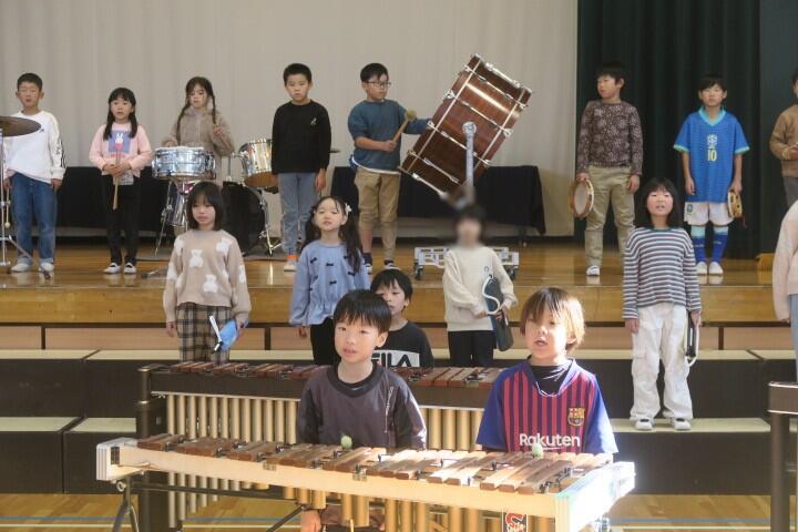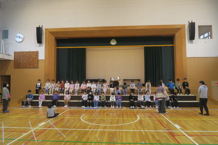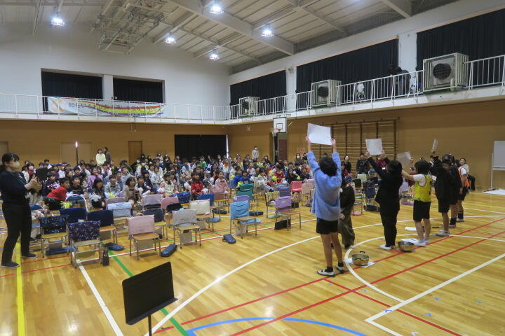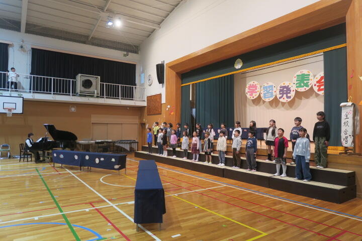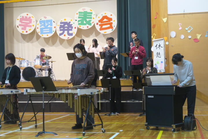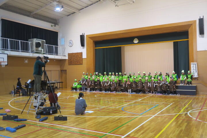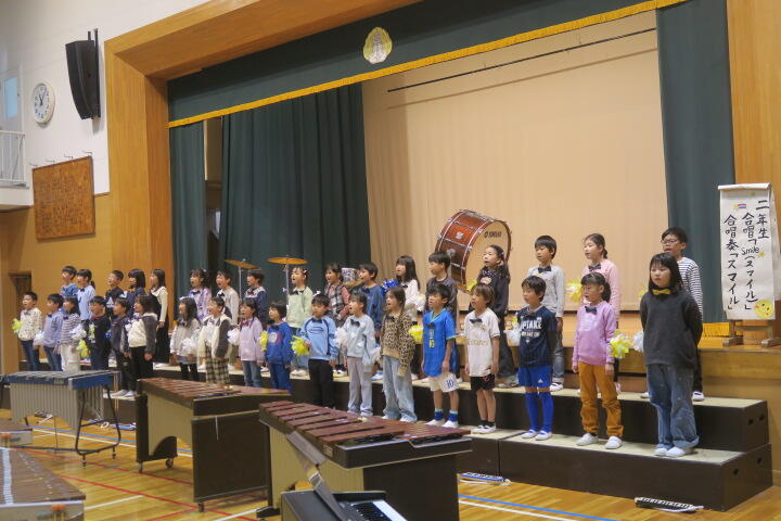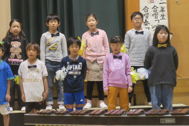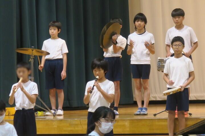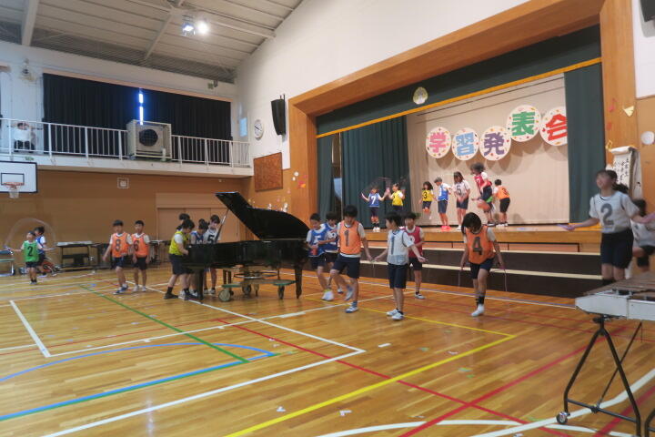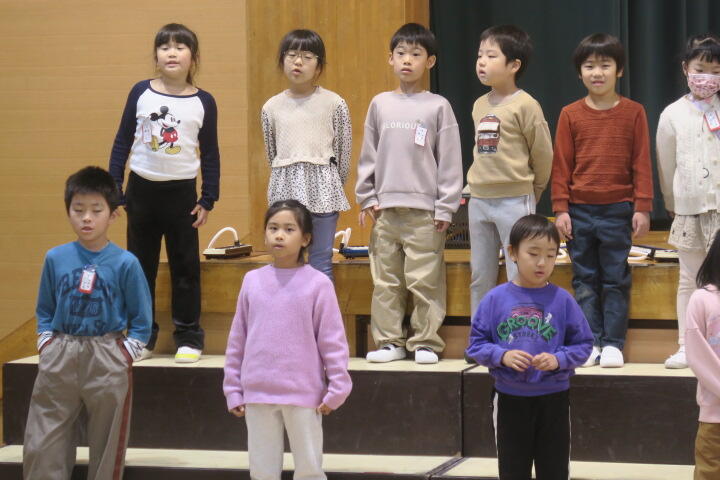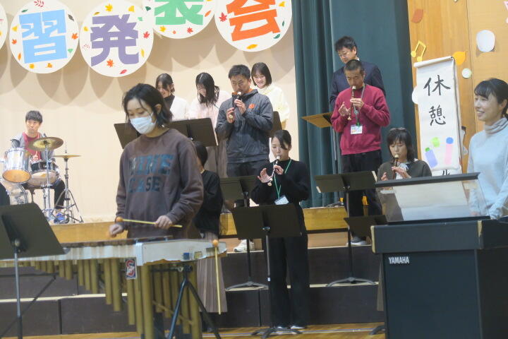 体育館で鍵盤ハーモニカの演奏をしているところでした。