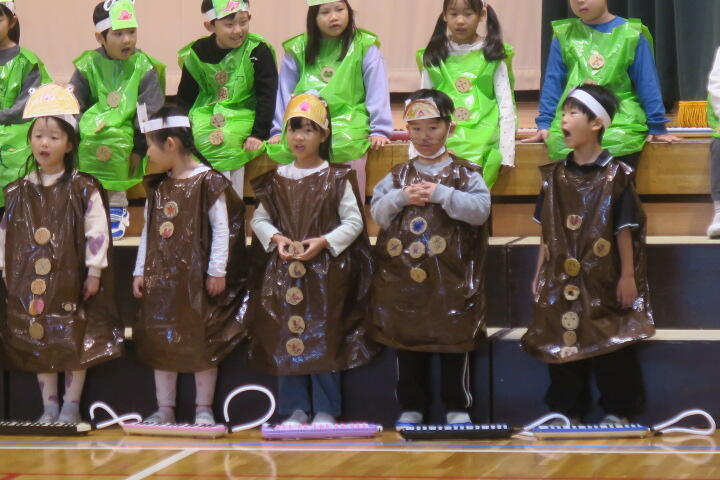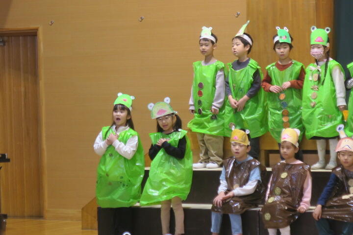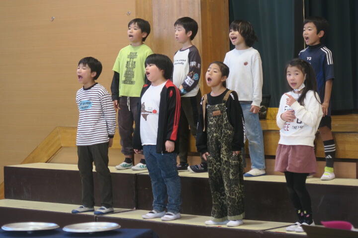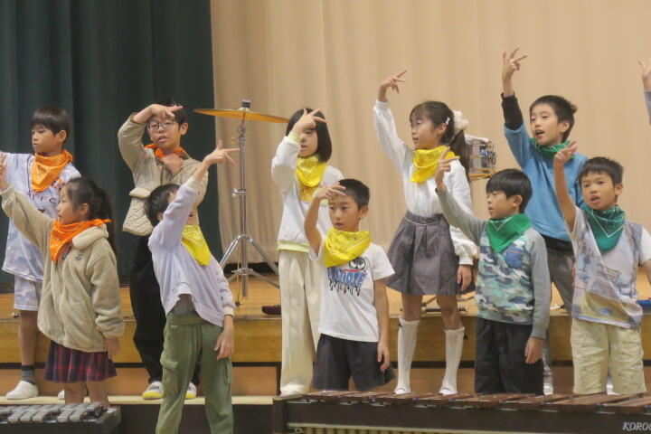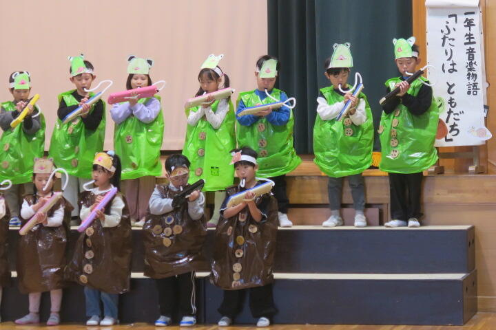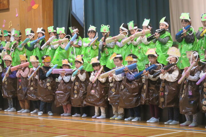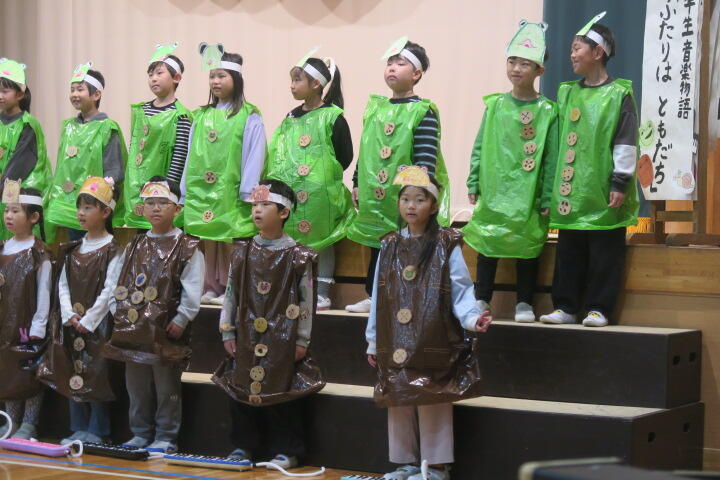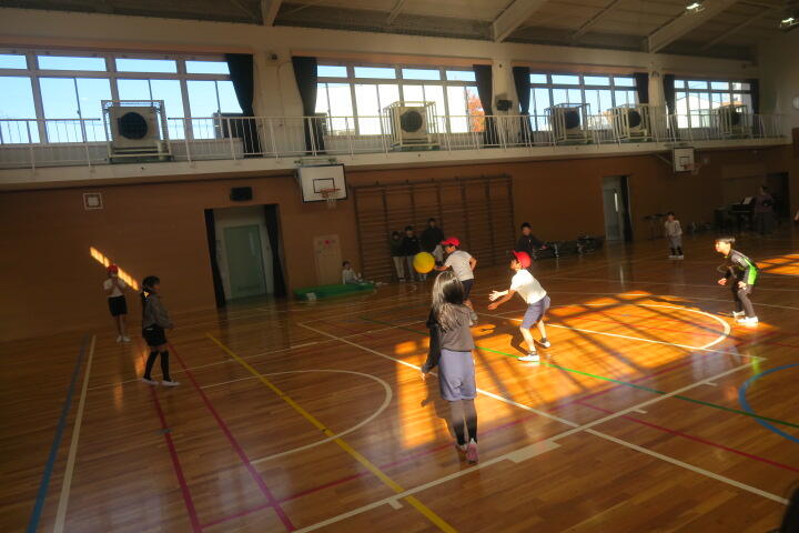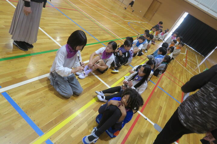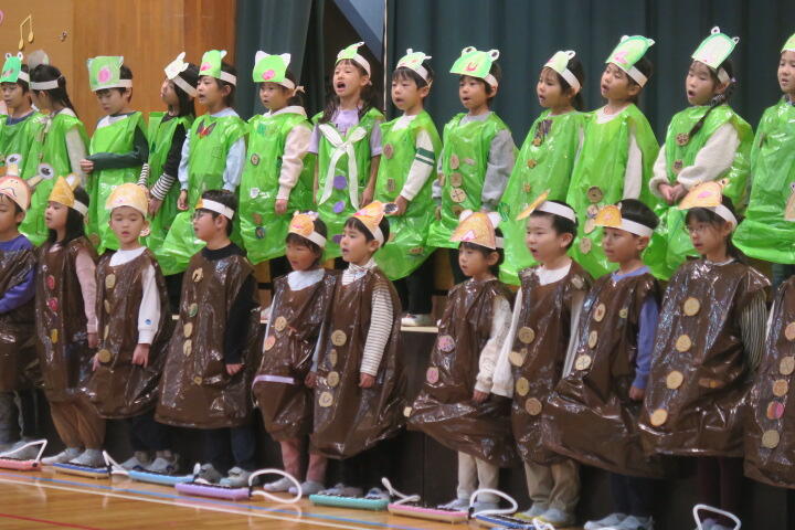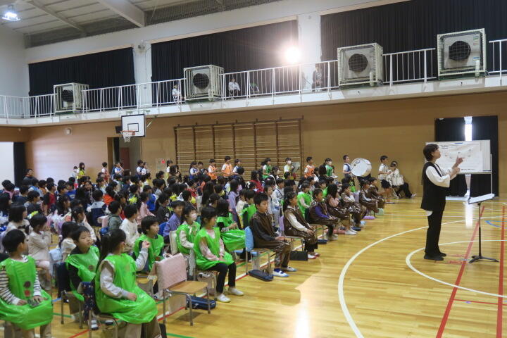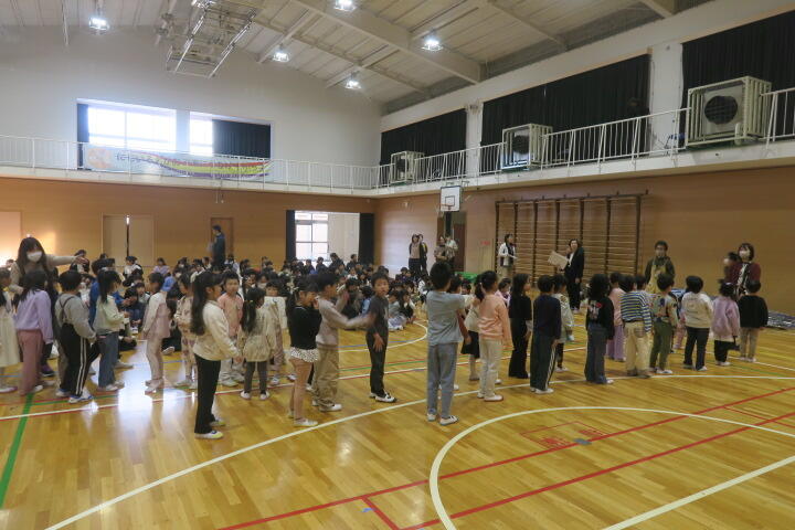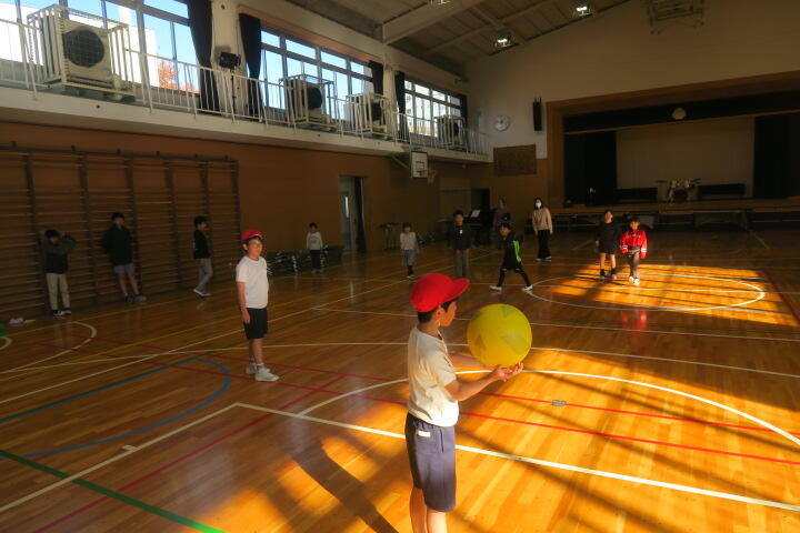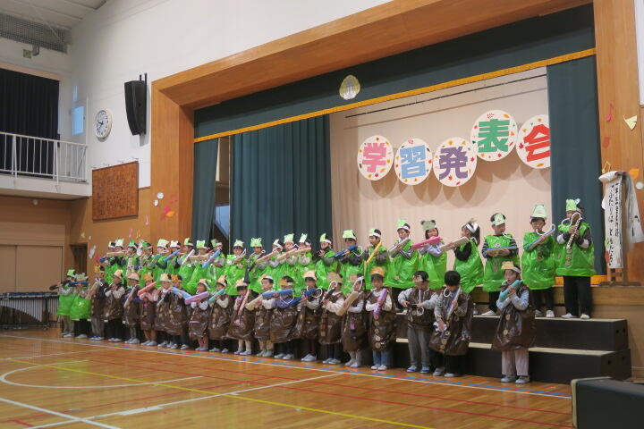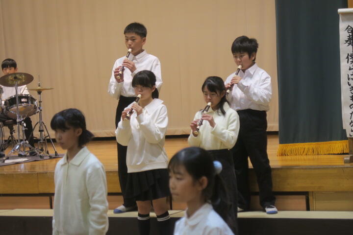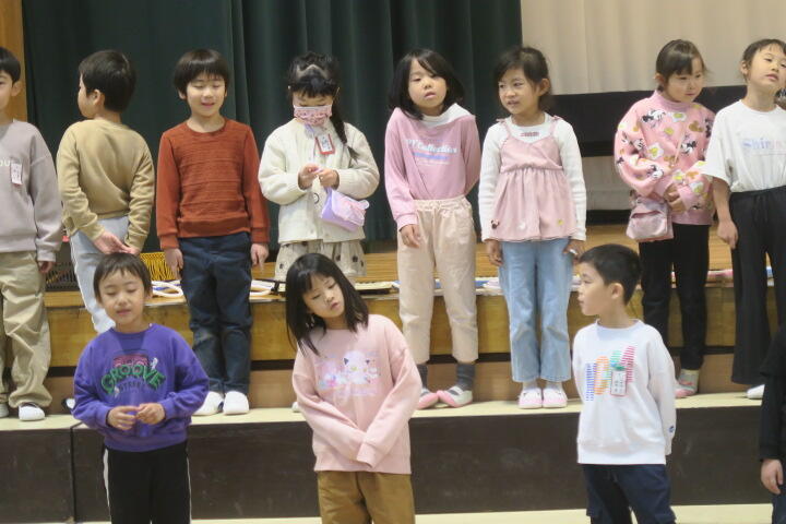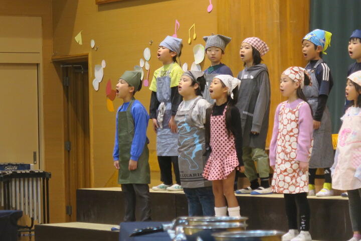 体育館で鍵盤ハーモニカの演奏をしているところでした。