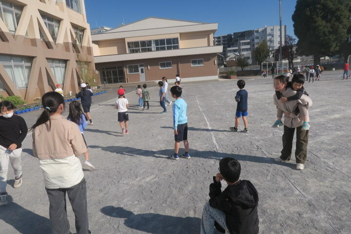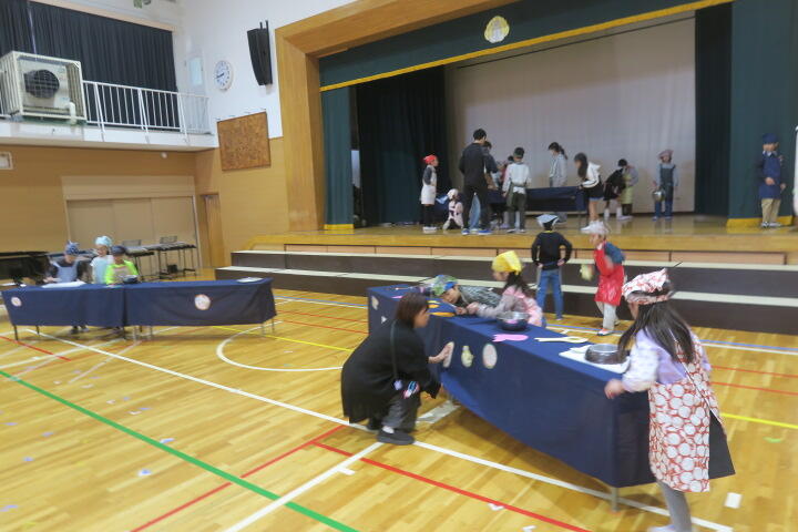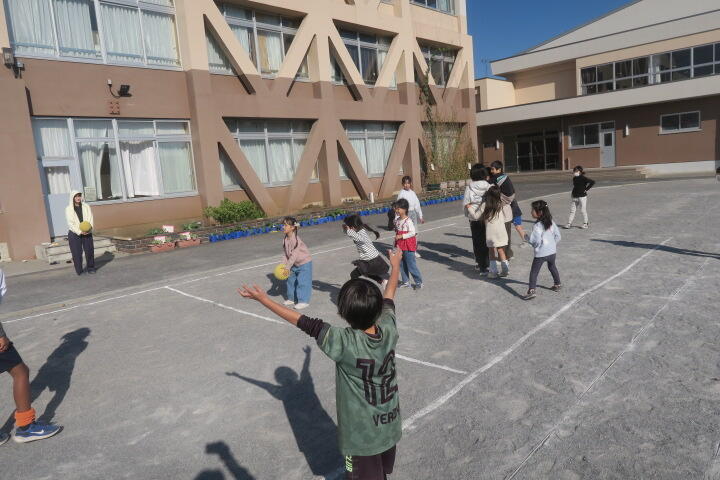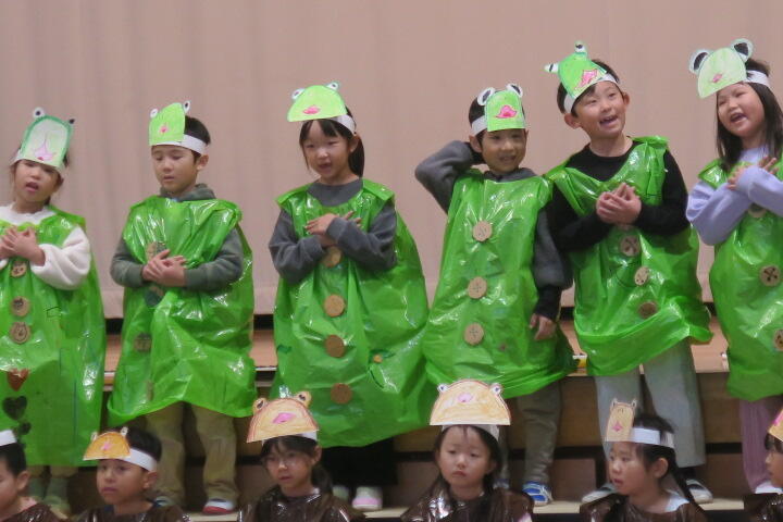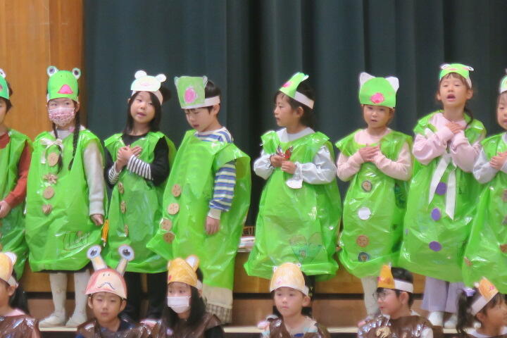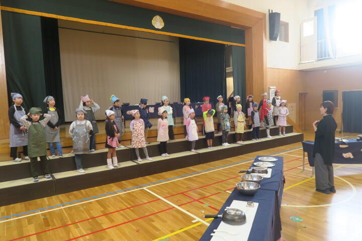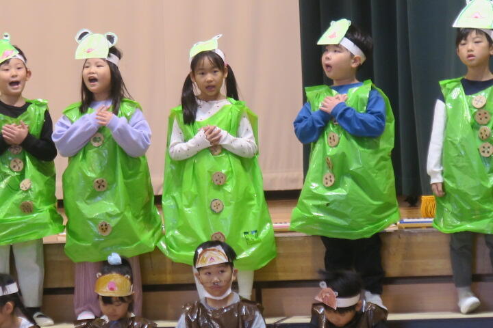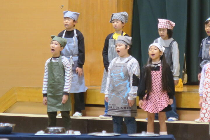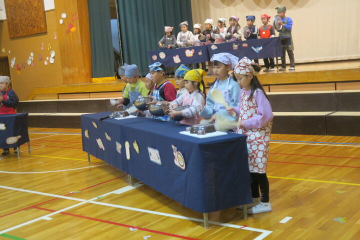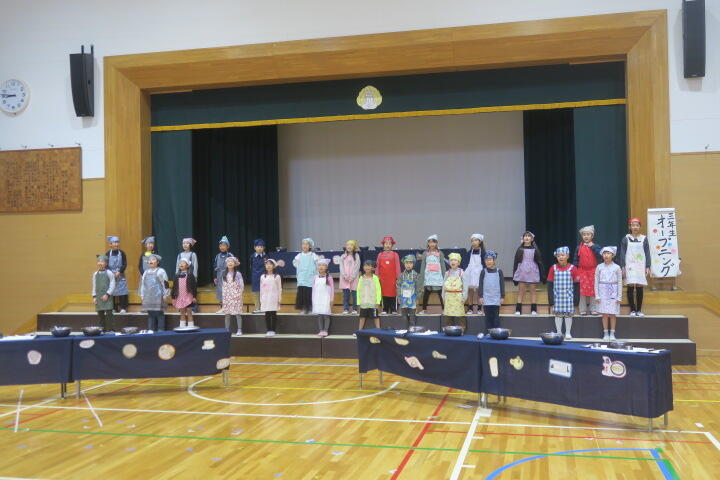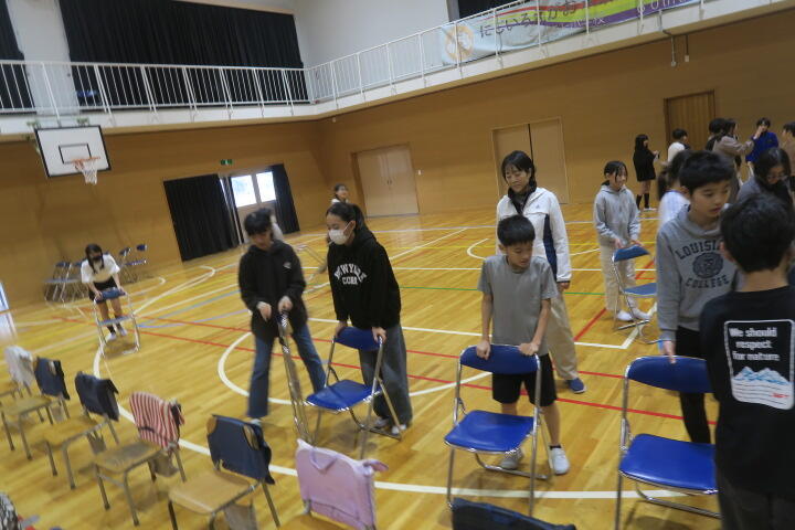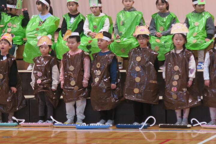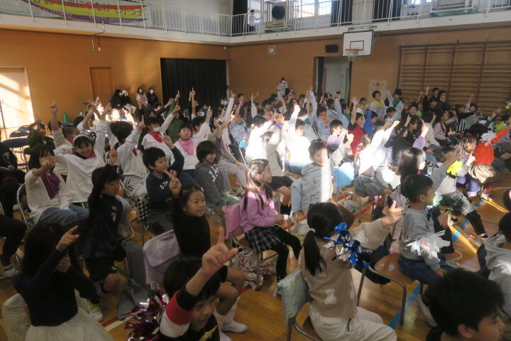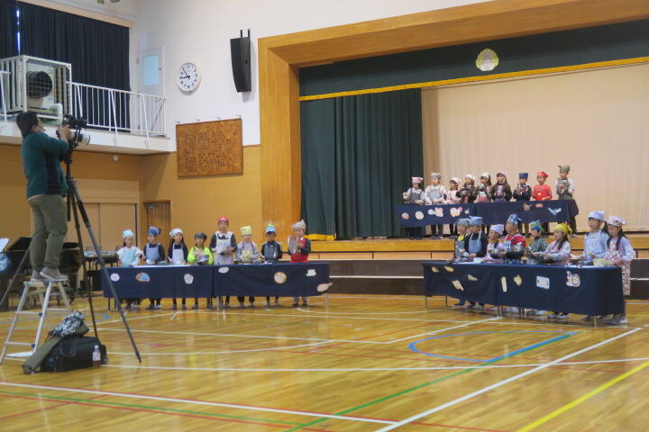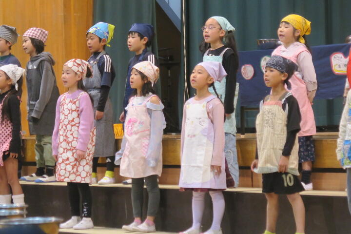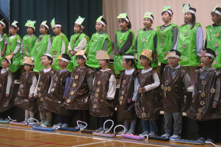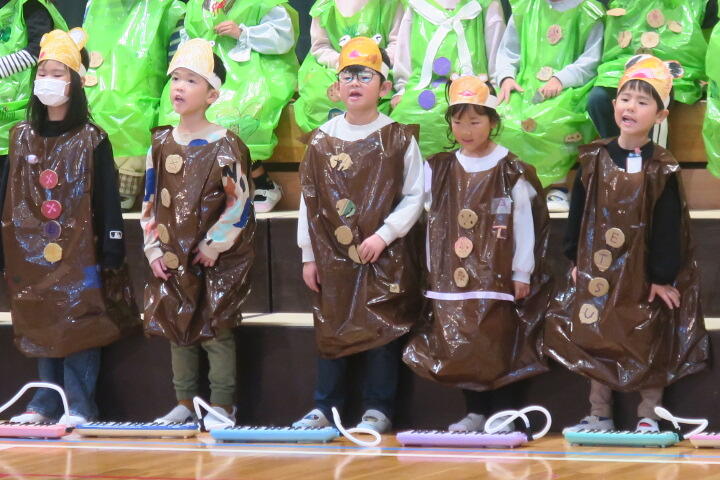 体育館で鍵盤ハーモニカの演奏をしているところでした。