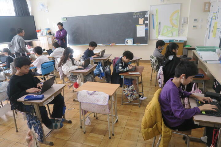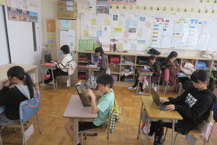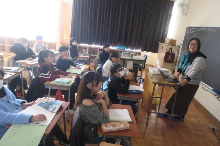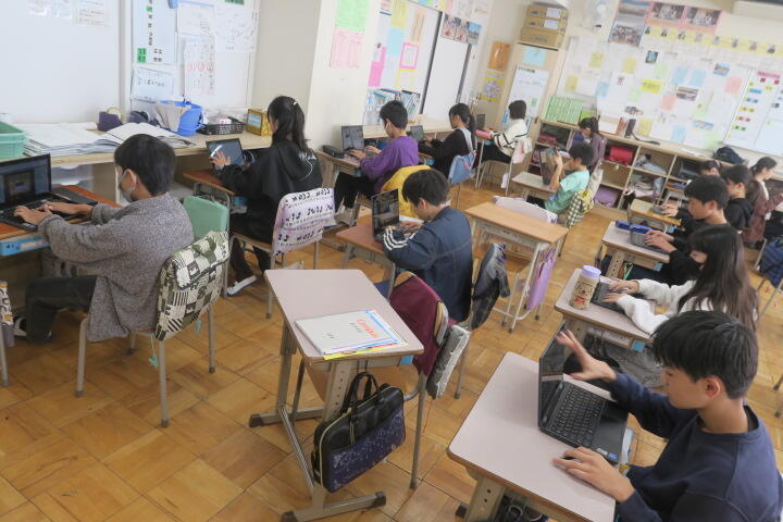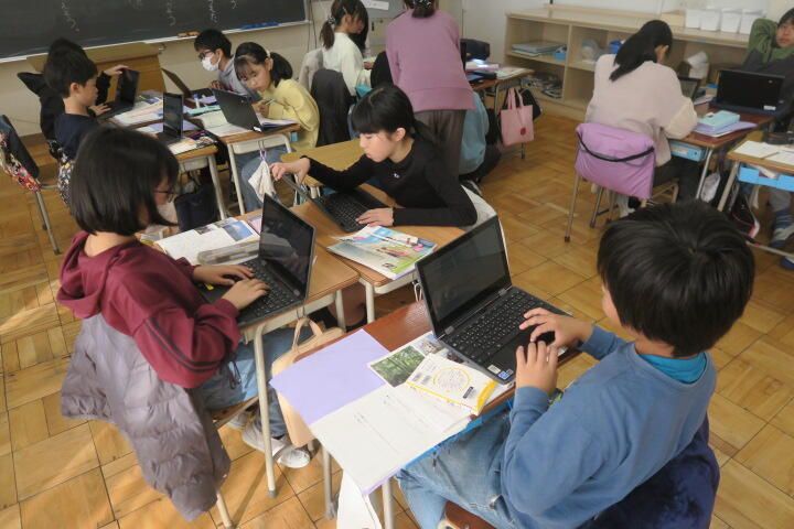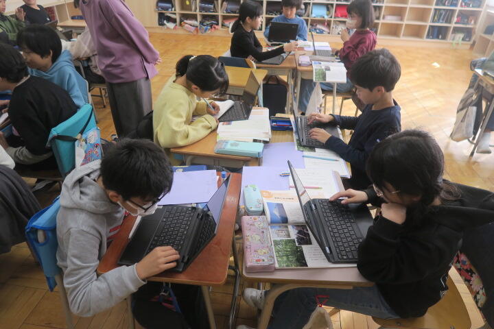 それぞれにテーマを決め文化遺産を調べ、スライドにまとめているところでした。