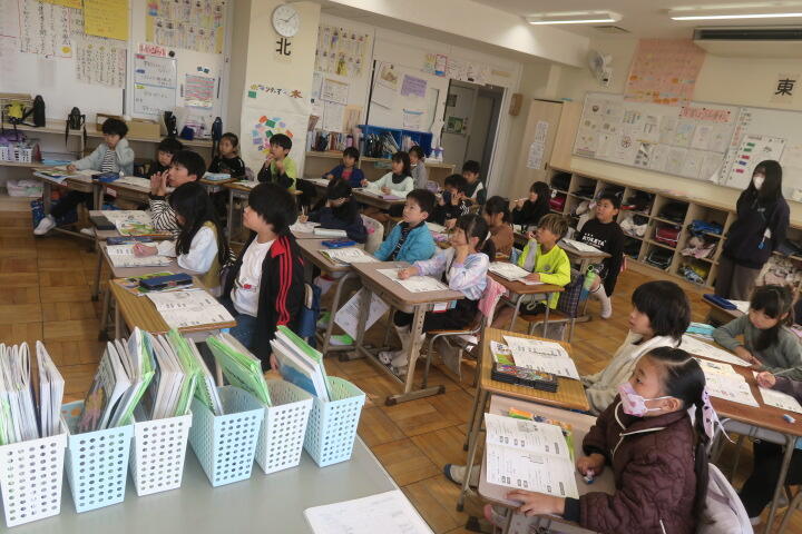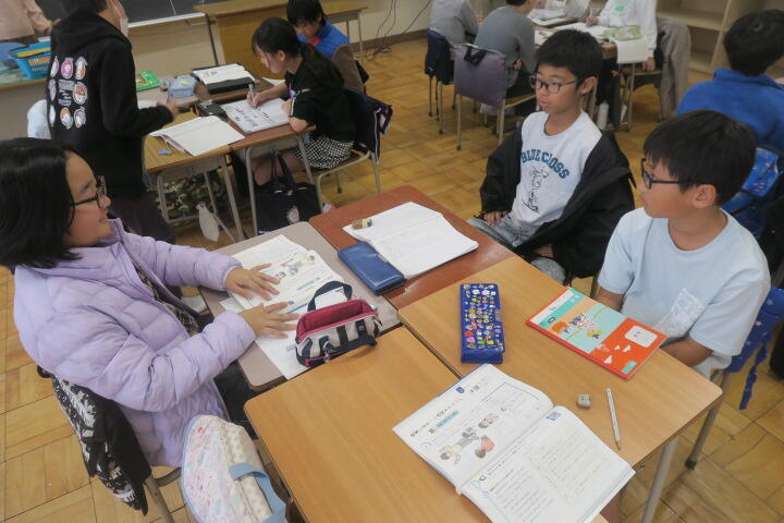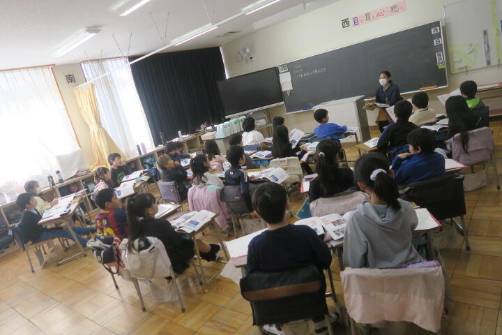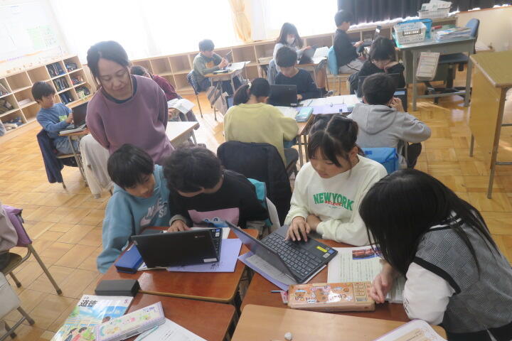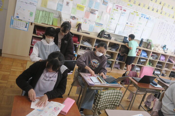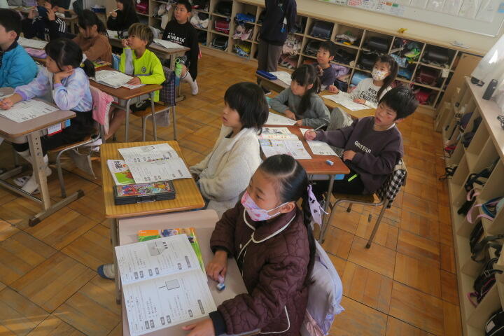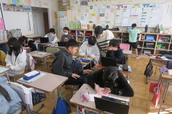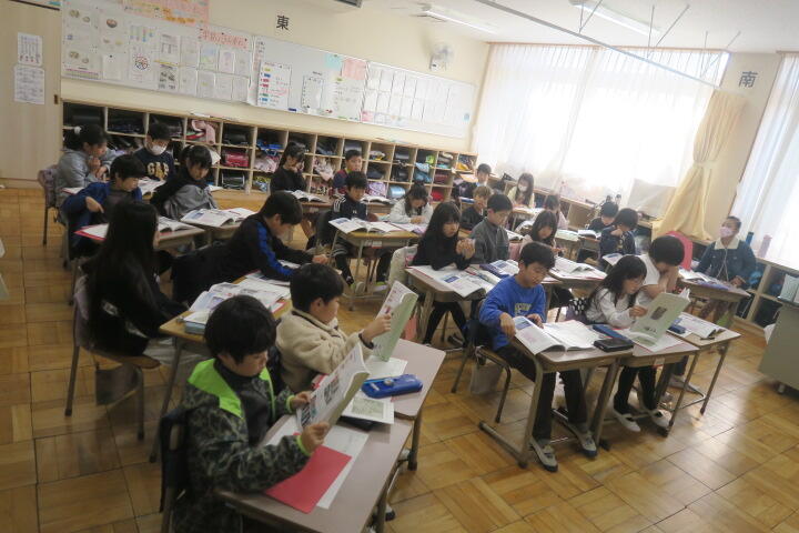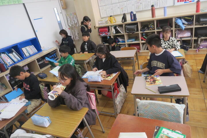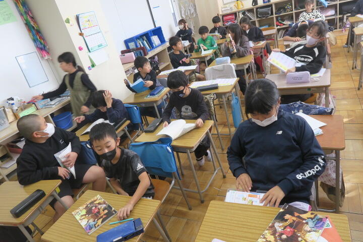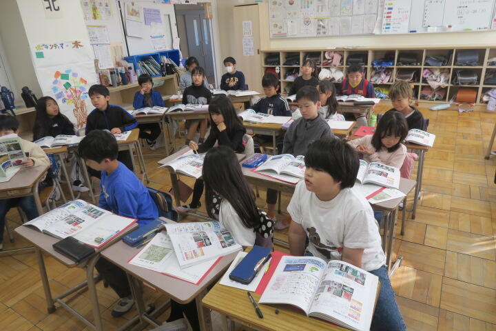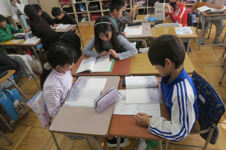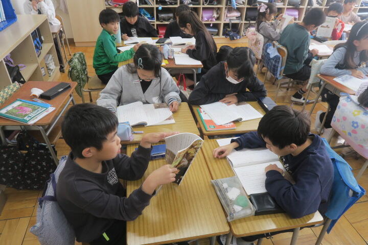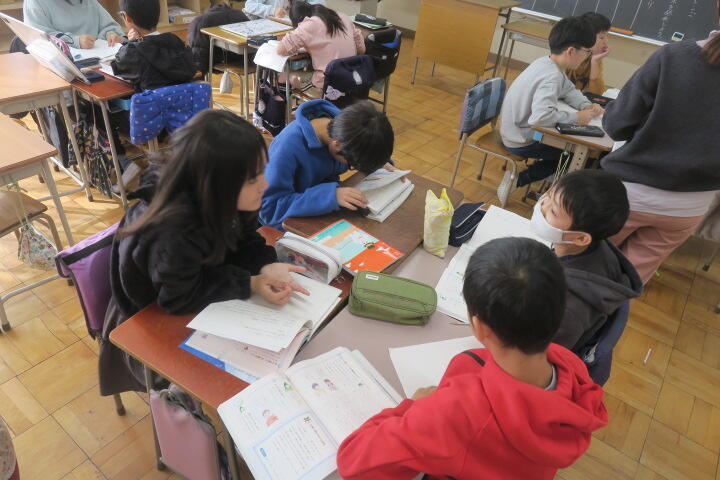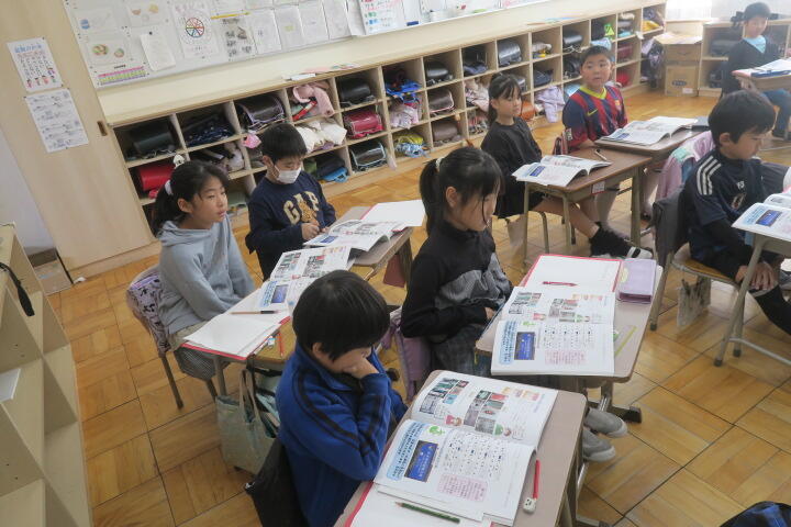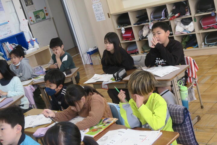 ワークシートを使いながら、文章の読み取りを行っていました。