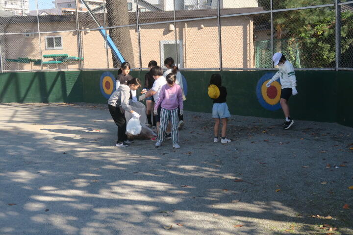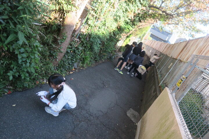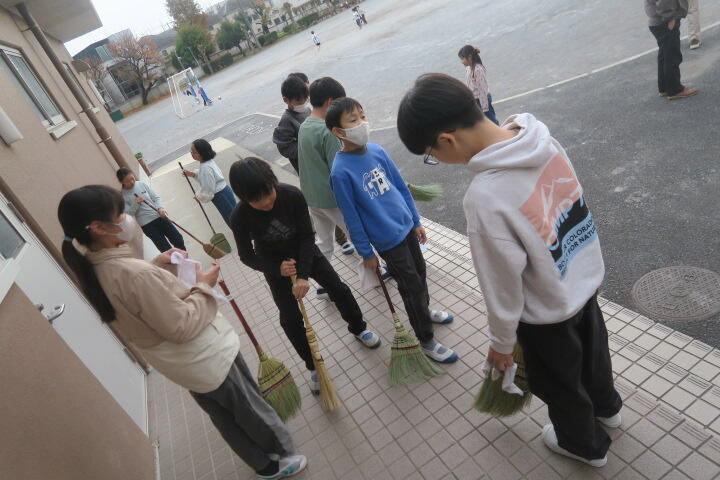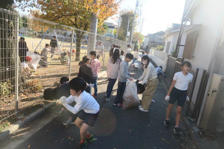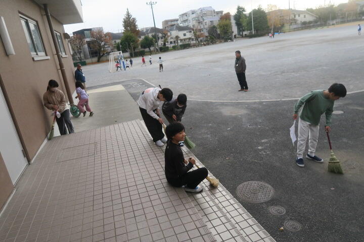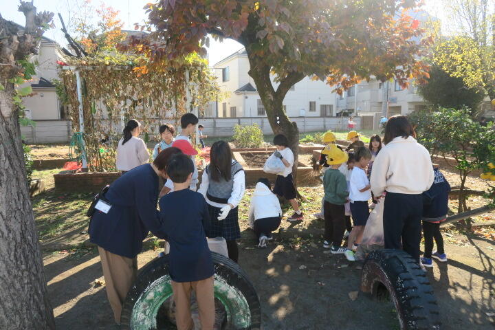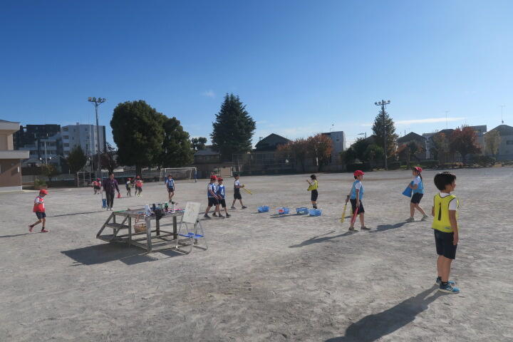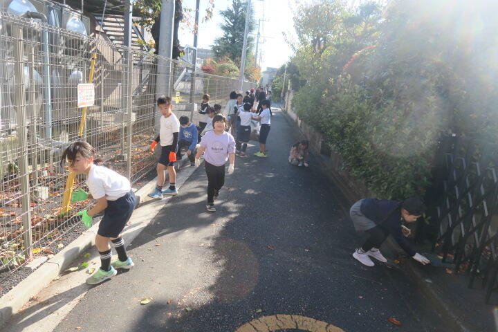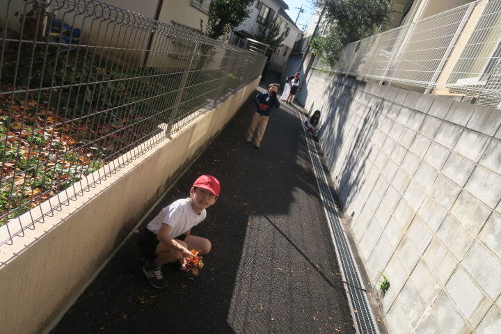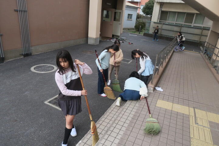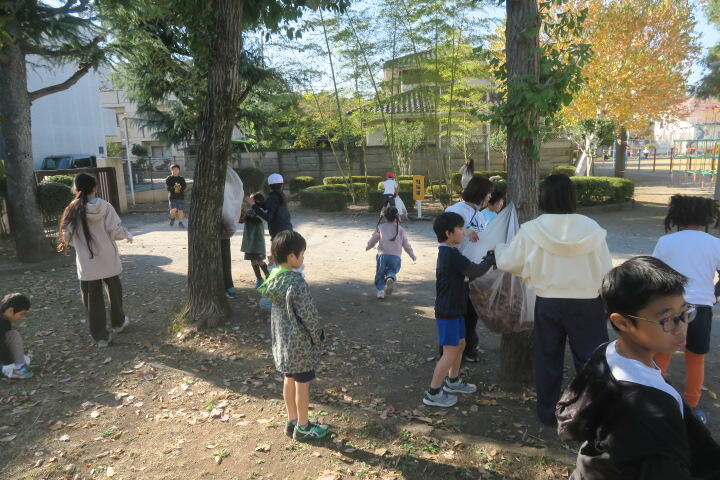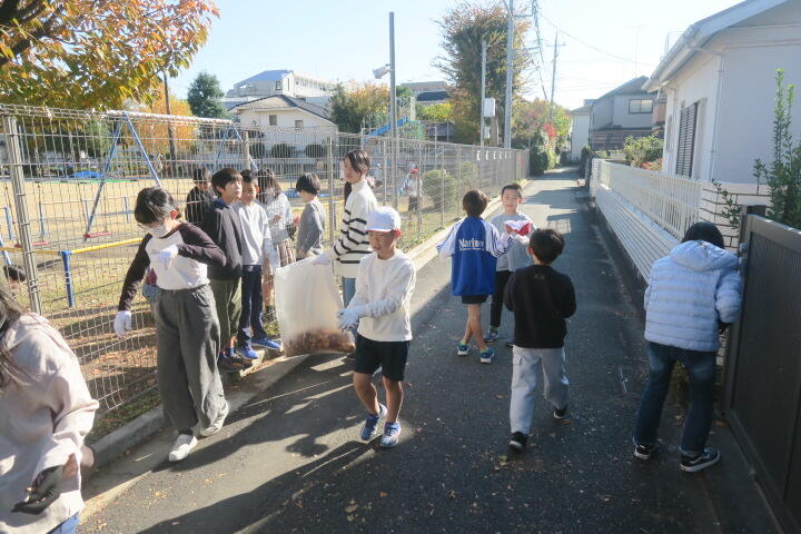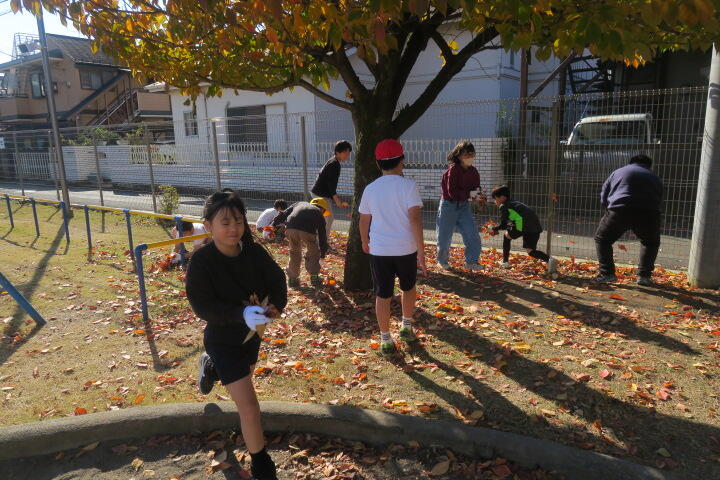 本日の清掃はたてわり班活動の落ち葉掃きです。