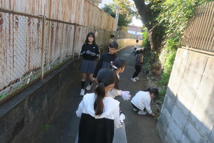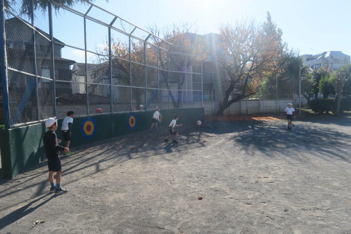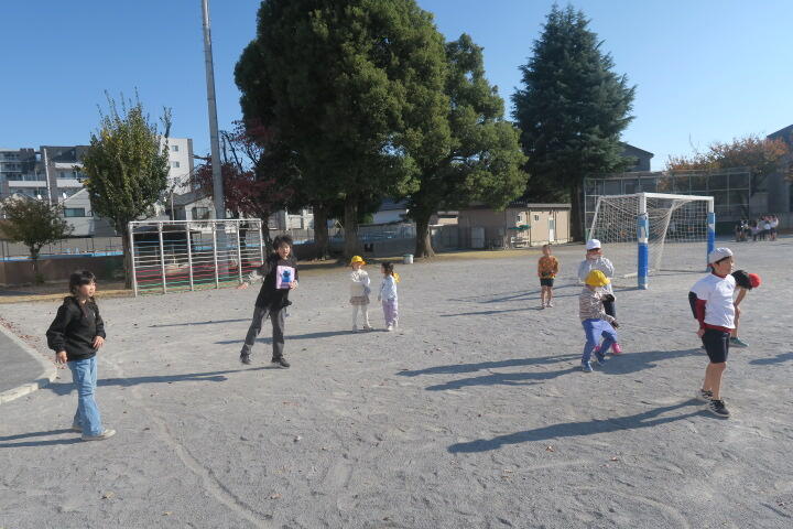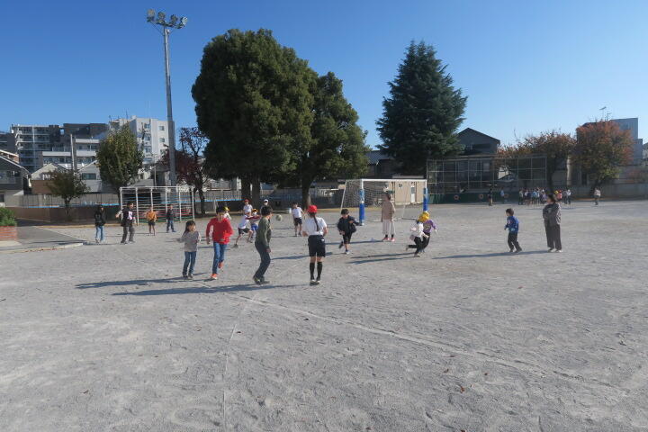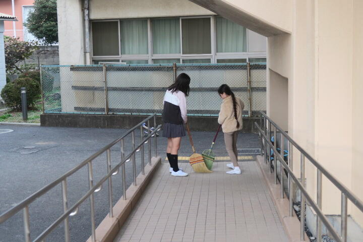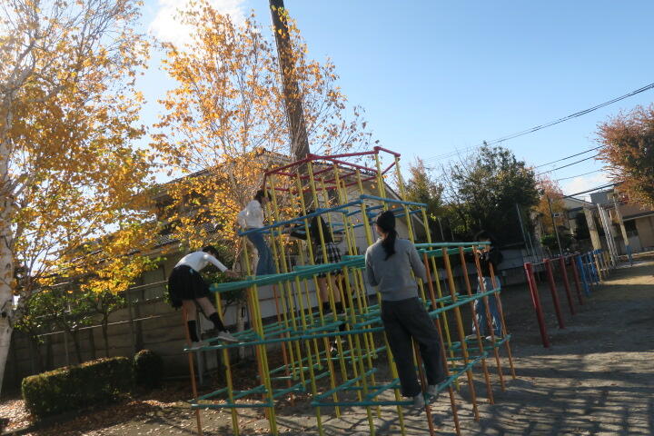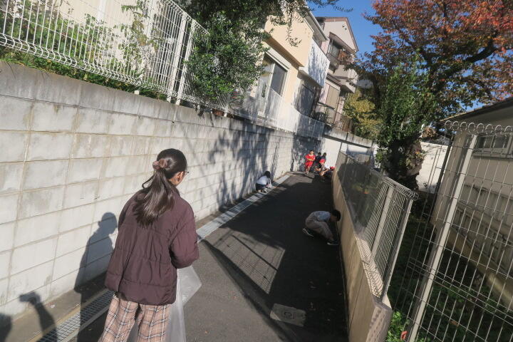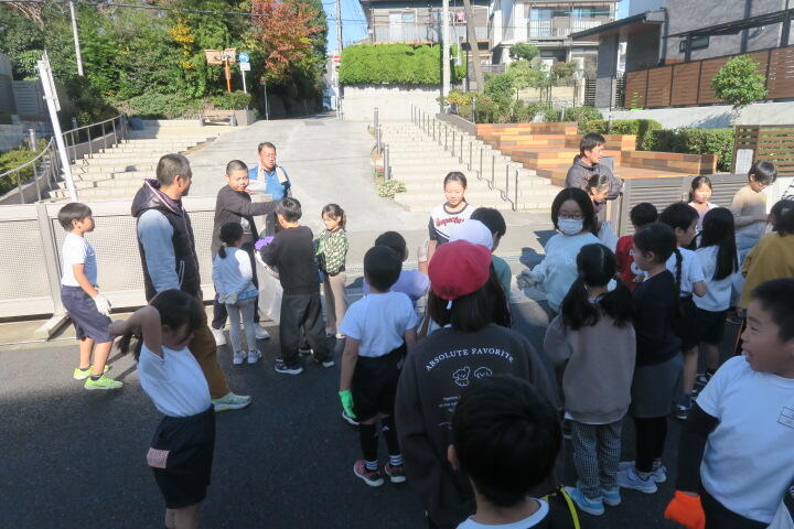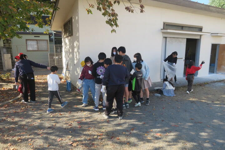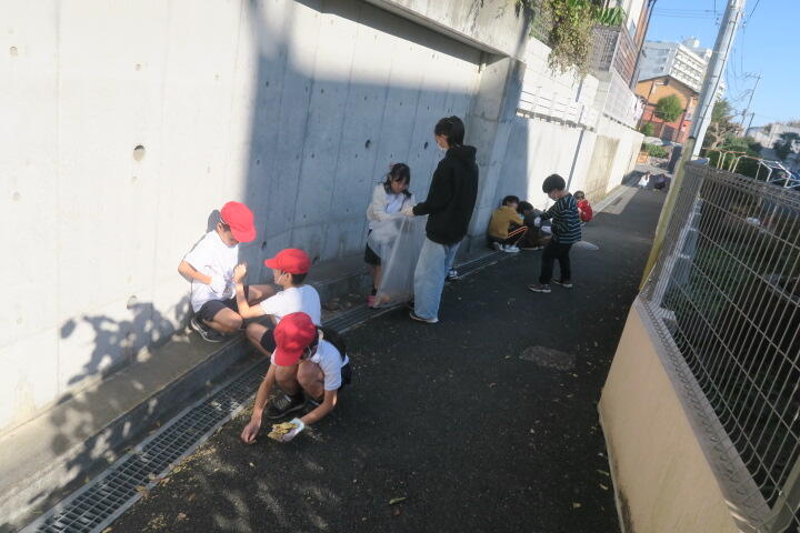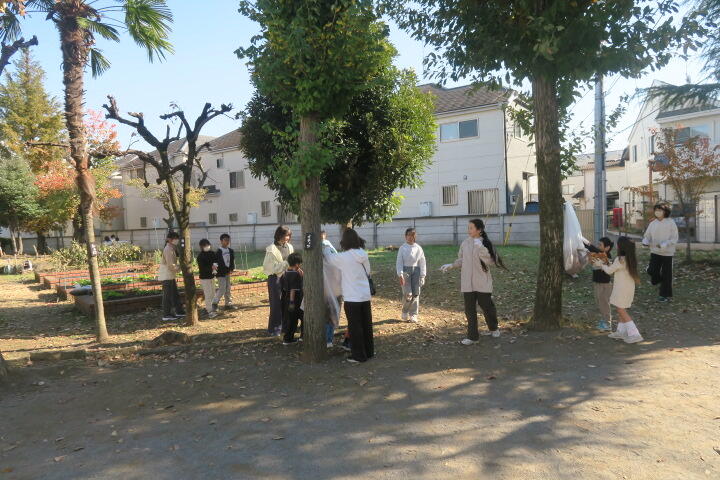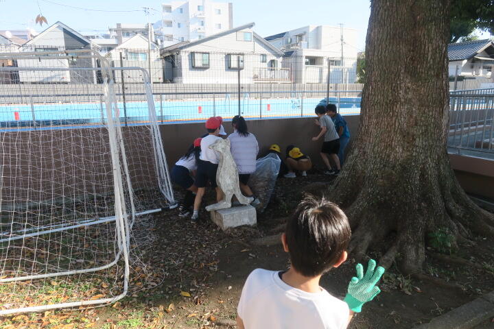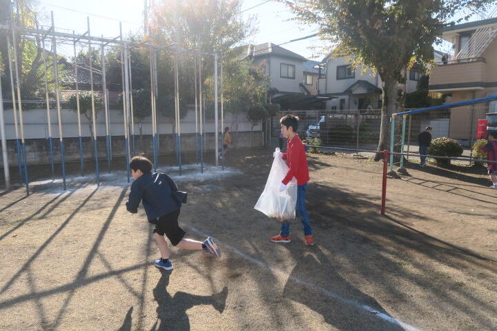 本日の清掃はたてわり班活動の落ち葉掃きです。