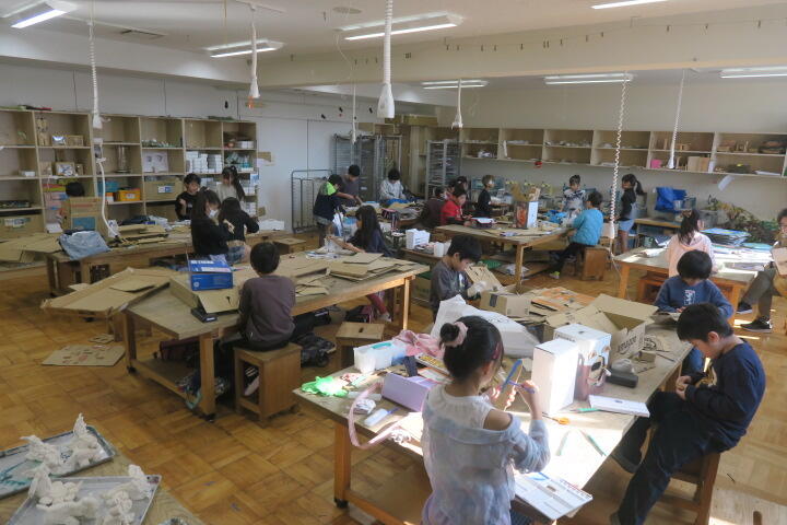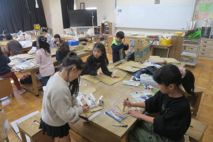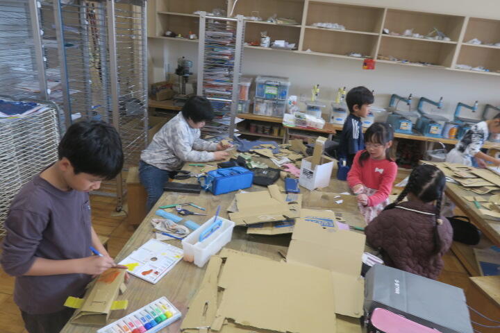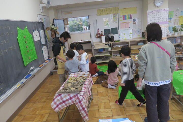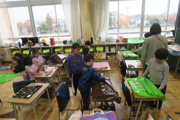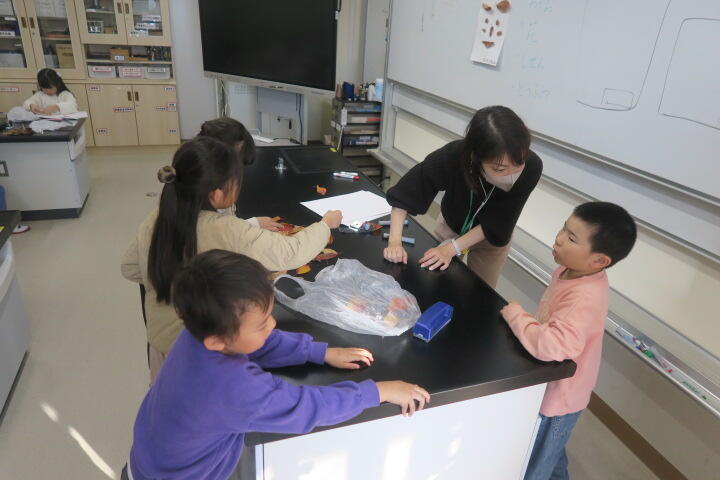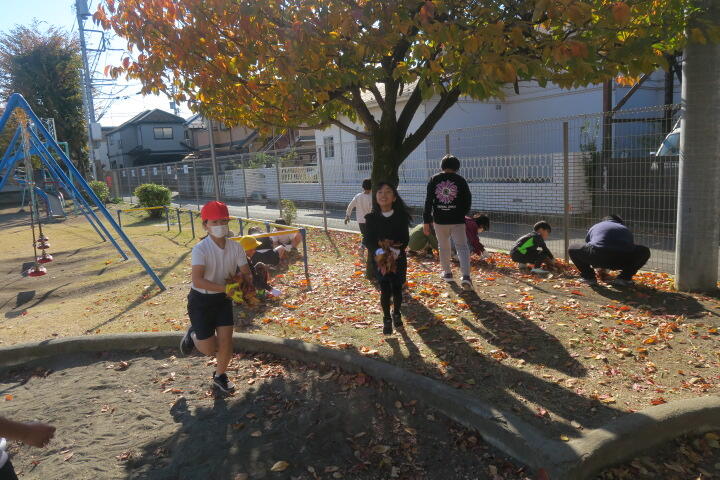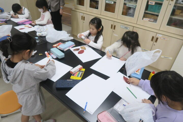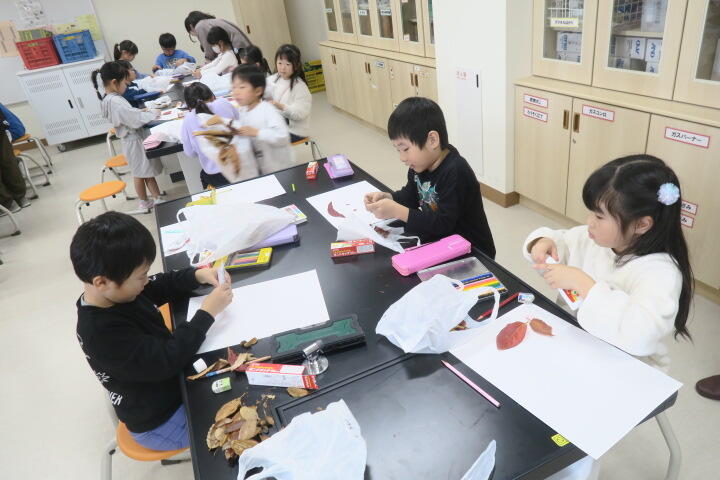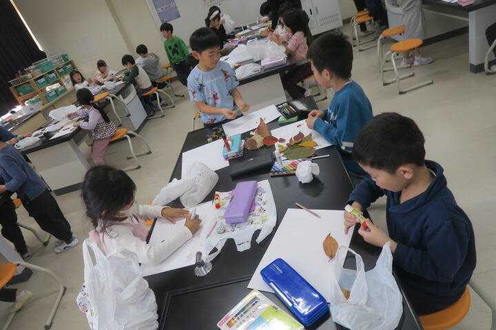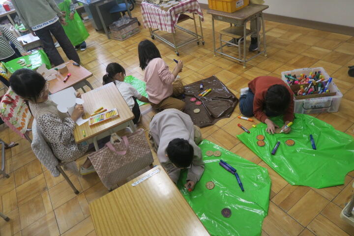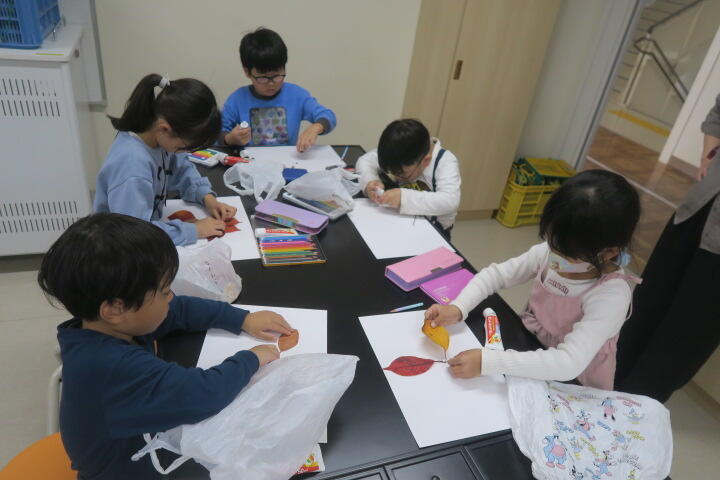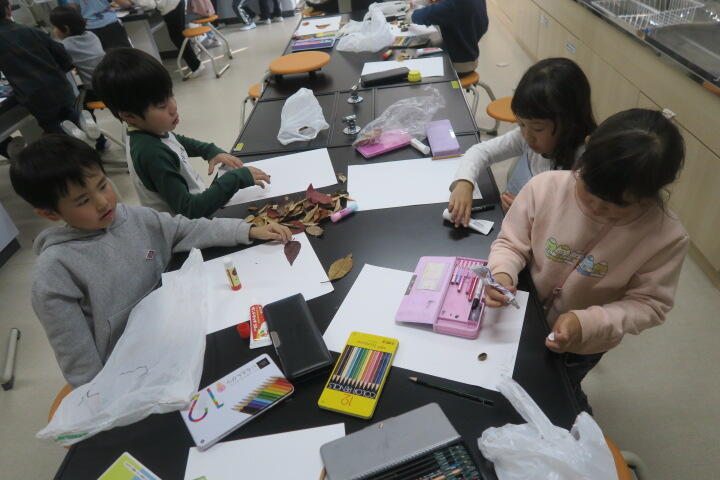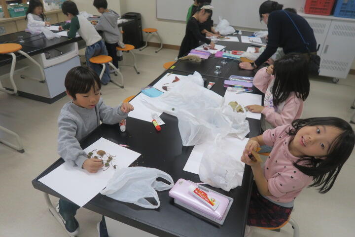 落ち葉やどんぐりを使って作品作りをしているところでした。
