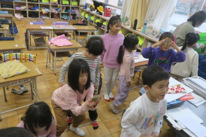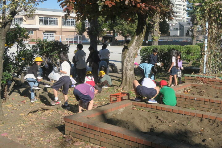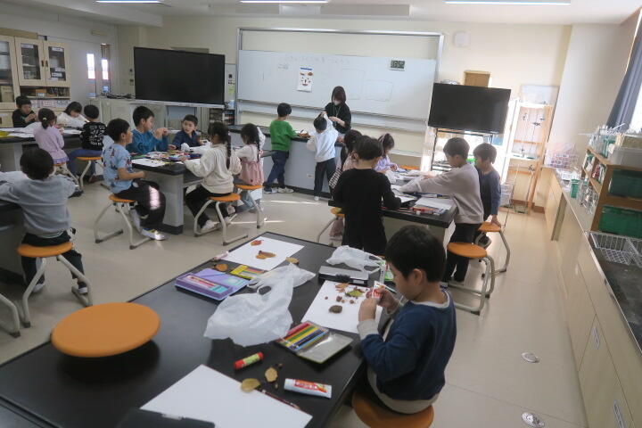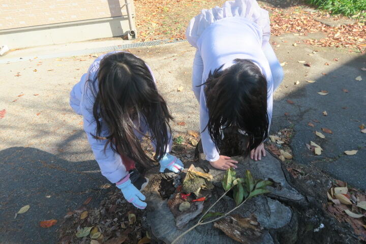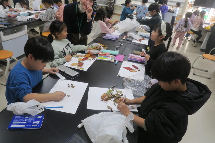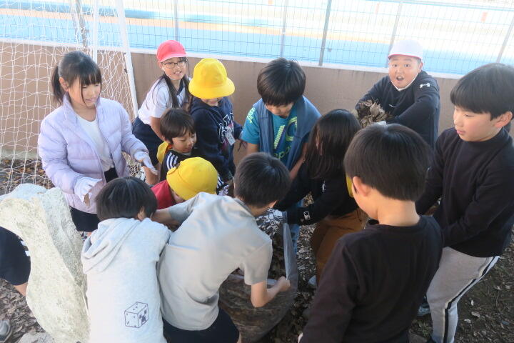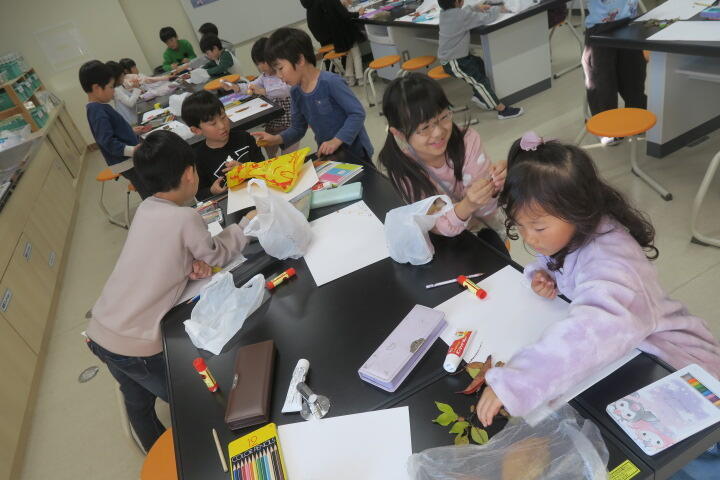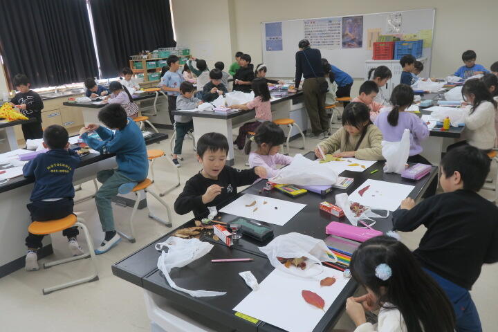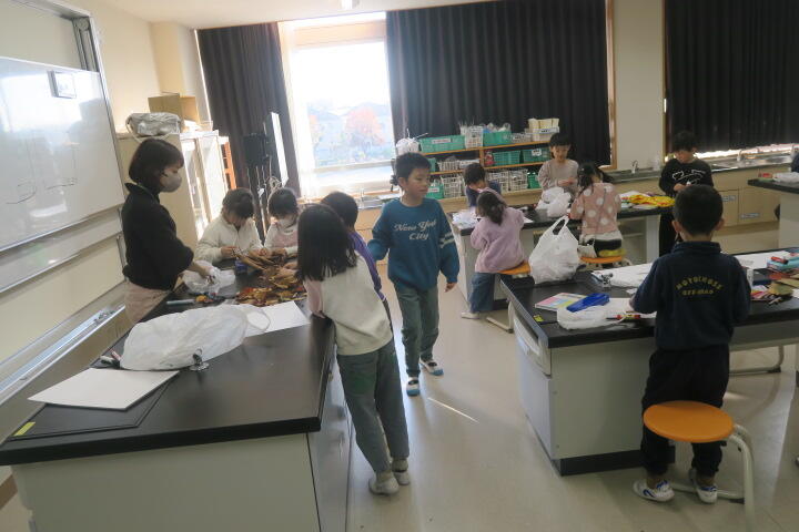 1年生の生活科はガニガラ公園の校外学習で拾ってきた、