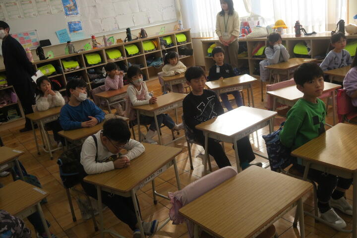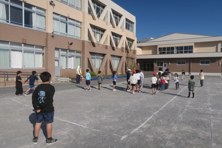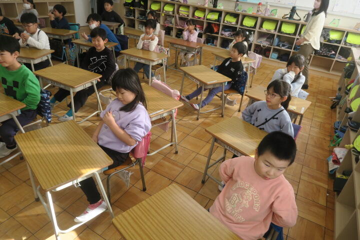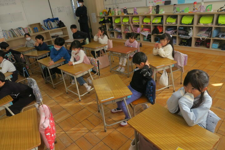 廊下や階段、校庭にいた児童は放送を聞き、自分で判断して