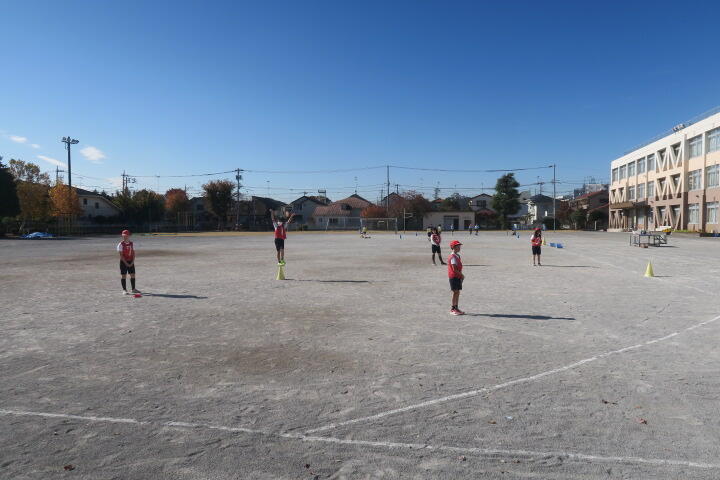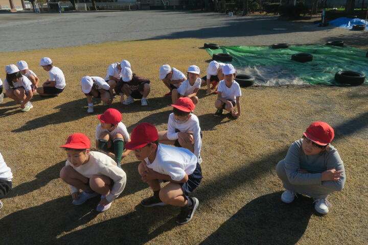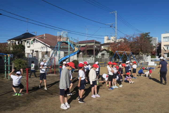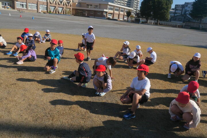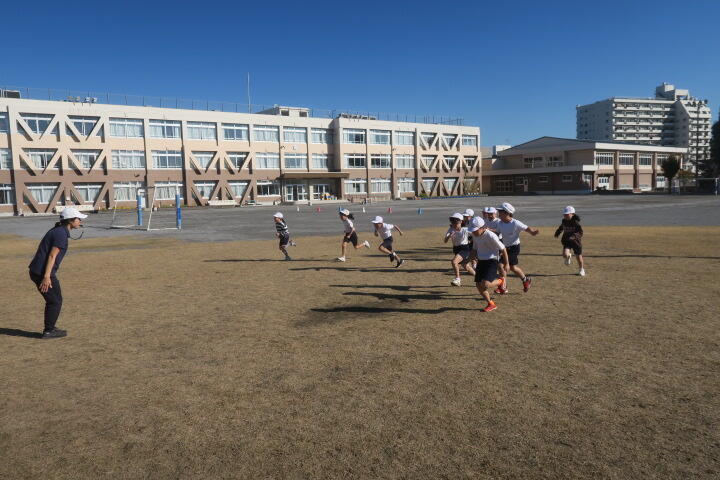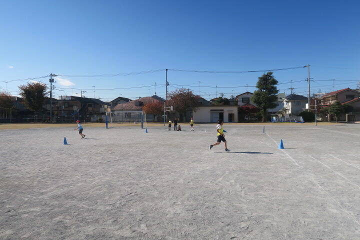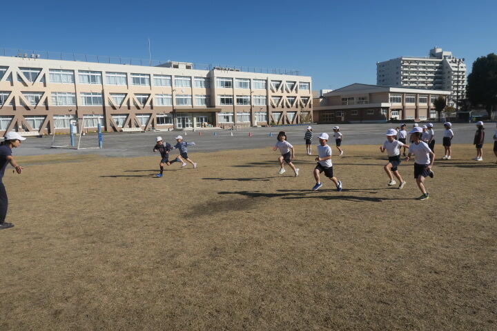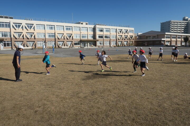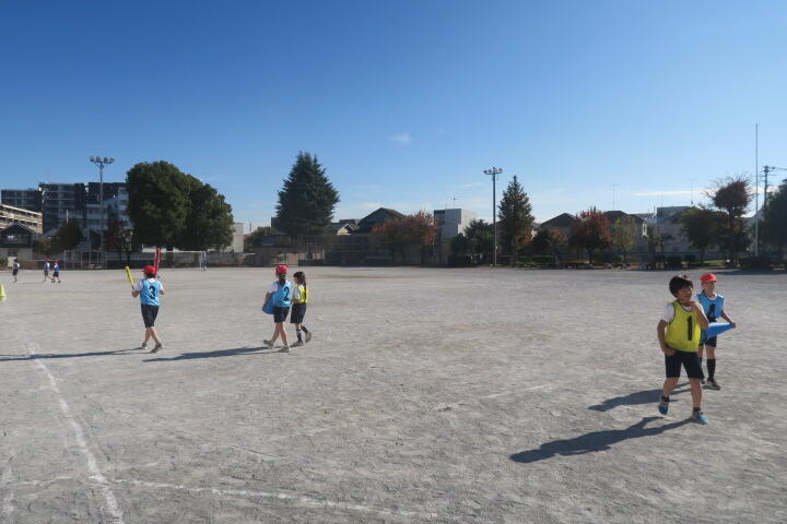 リレーを始める前に、準備運動でダッシュなどしていました。