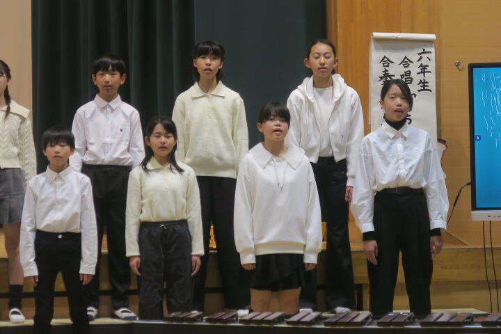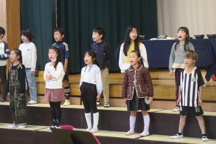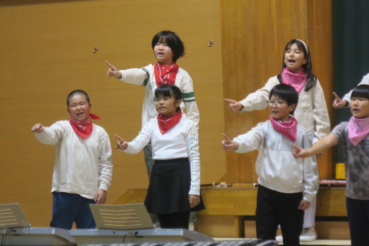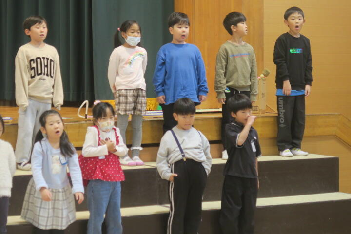 学習発表会の全員合唱で歌う、「こえのうた」の練習をしました。