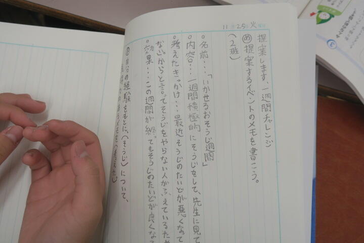 2組の国語は「提案します 1週間チャレンジ」の学習の続きです。