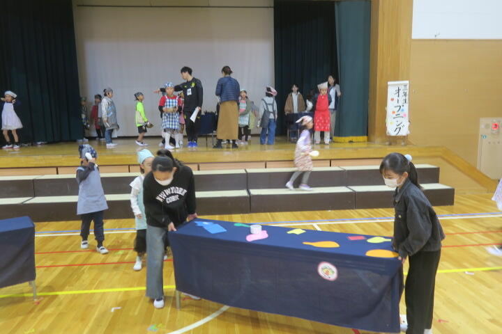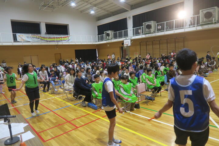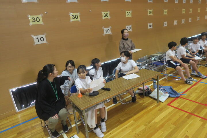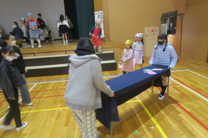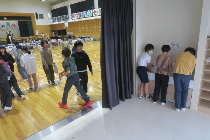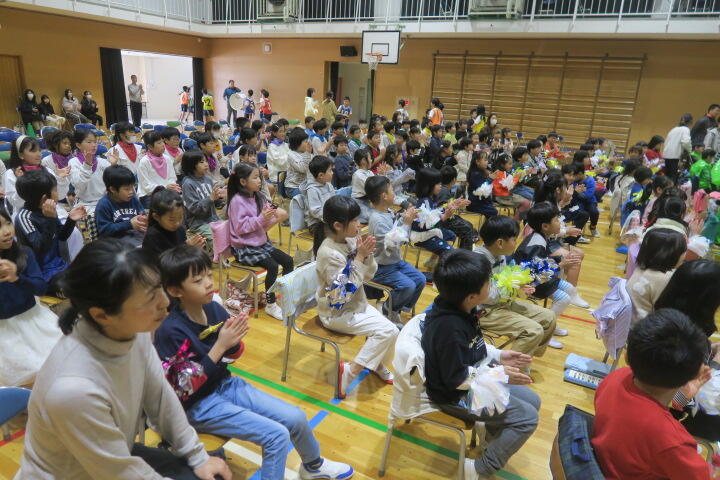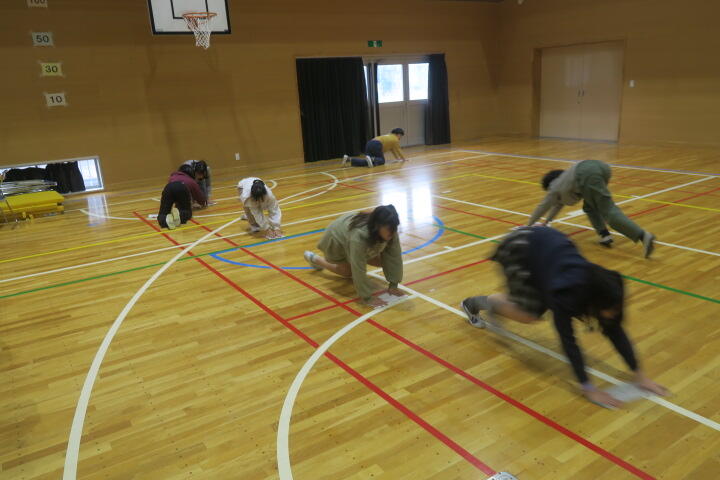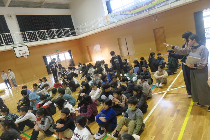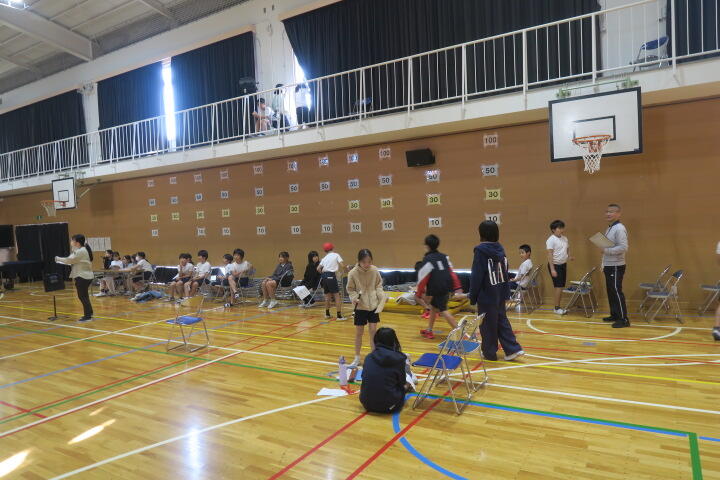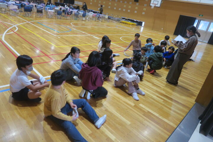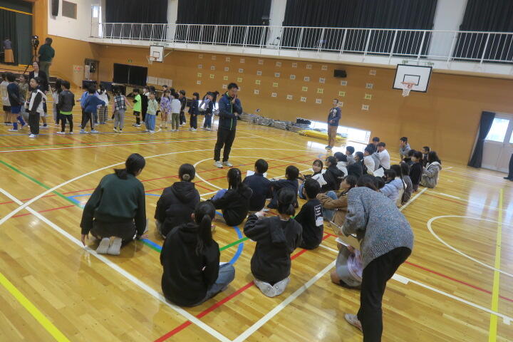 学年合同で体育館に集まり、本番と同じように練習していました。