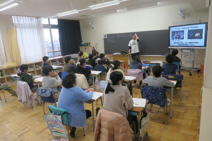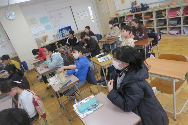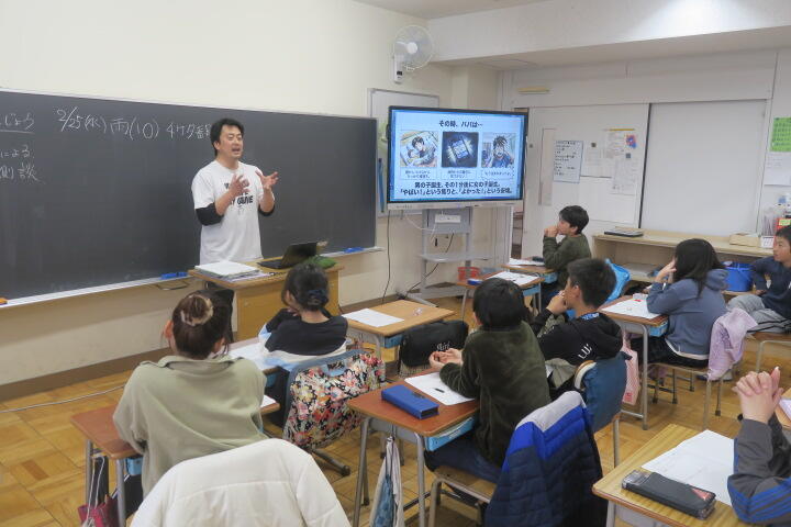 6年生の先生を講師に迎えて、経験談を話してもらっていました。