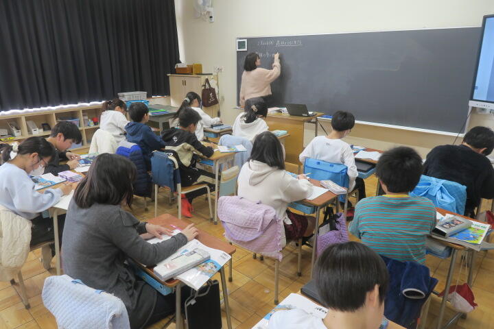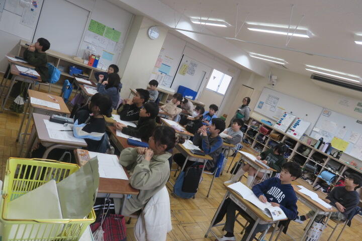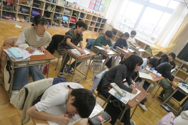 1組の外国語は発表のテストです。