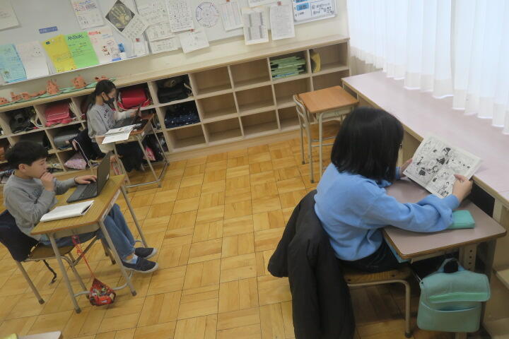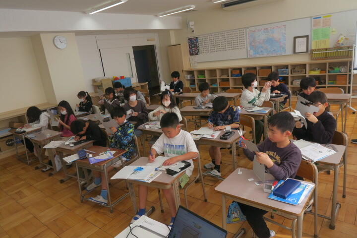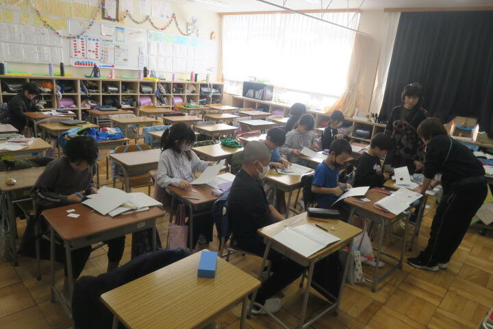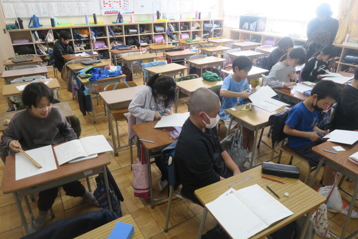 テスト以外の子は発表の準備や個別学習をしていました。