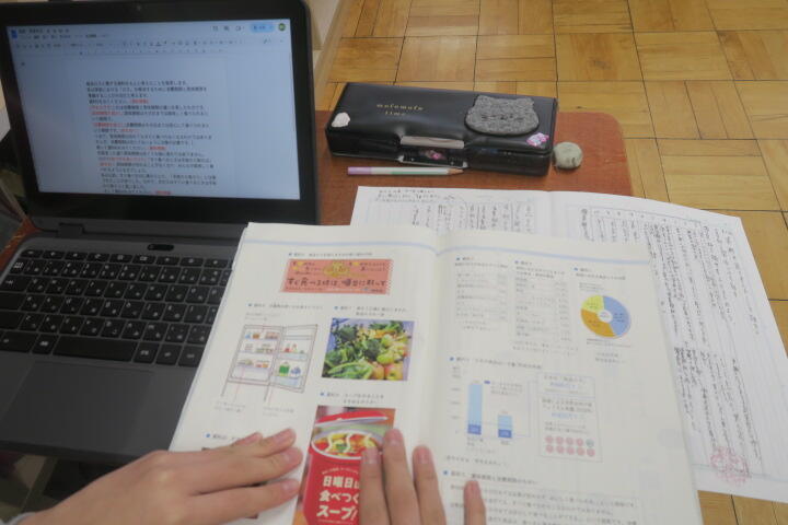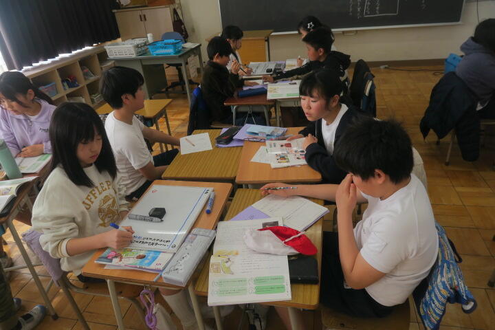 教科書やワークシートを使って1年間で学んだことを、