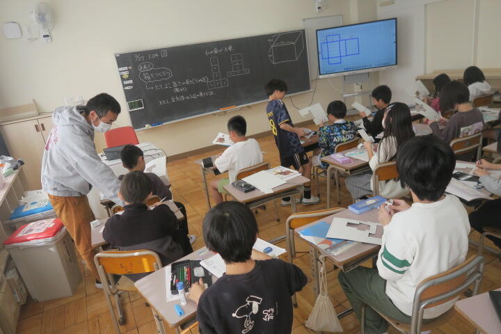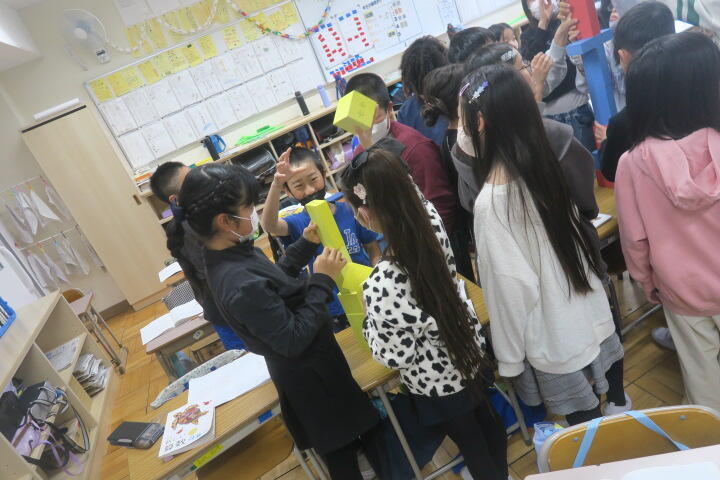 直方体や立方体を作り、確かめていました。