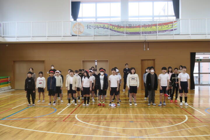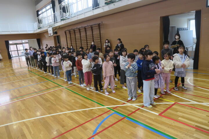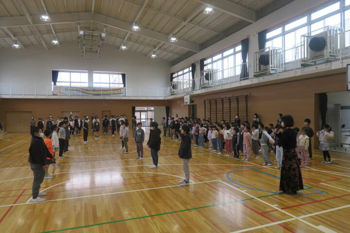 6年生を送る会の詩の練習と、隊形移動の確認などをしました。
