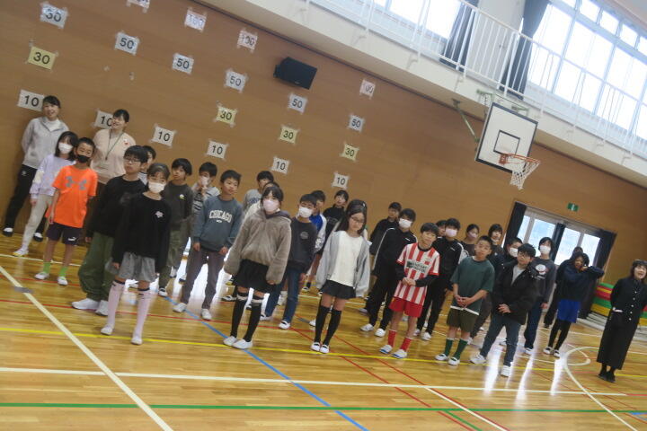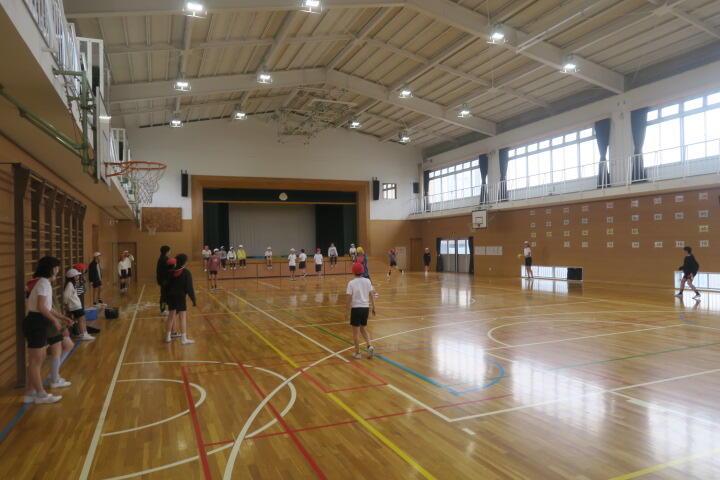 体育館で本番通りに練習をしていました。