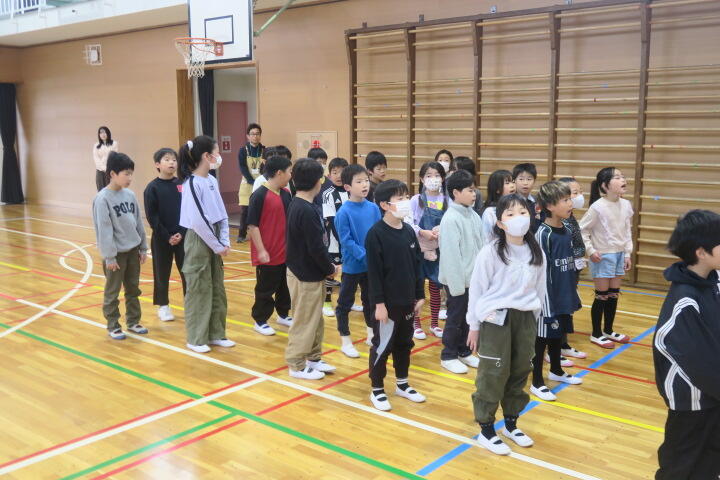 4年生の総合的な学習の時間は、6年生を送る会の練習です。
