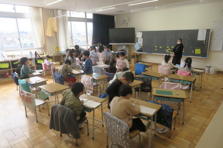 2年生の算数は計算問題を解いているところでした。