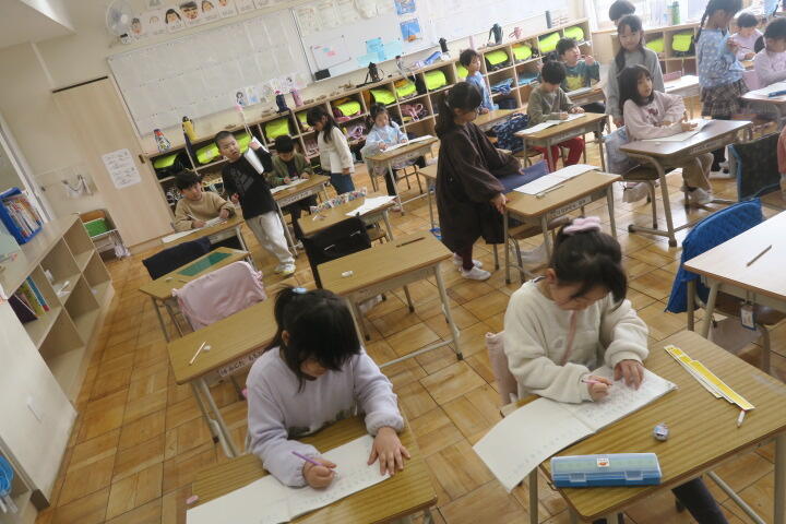 2年生で習った漢字をどれだけかけるかの挑戦をしていました。