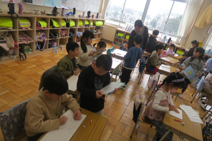 1年生の生活科は6年生を送る会のに向けて、