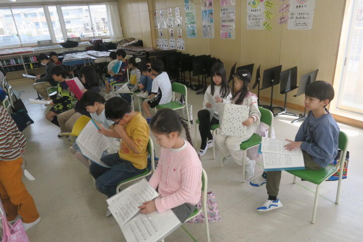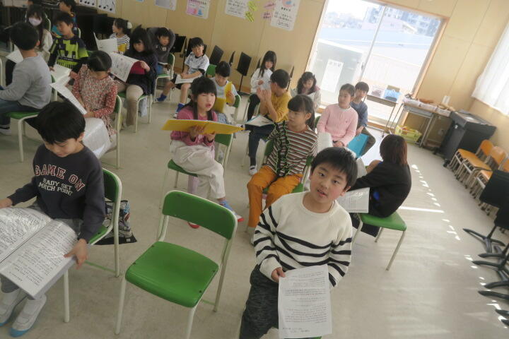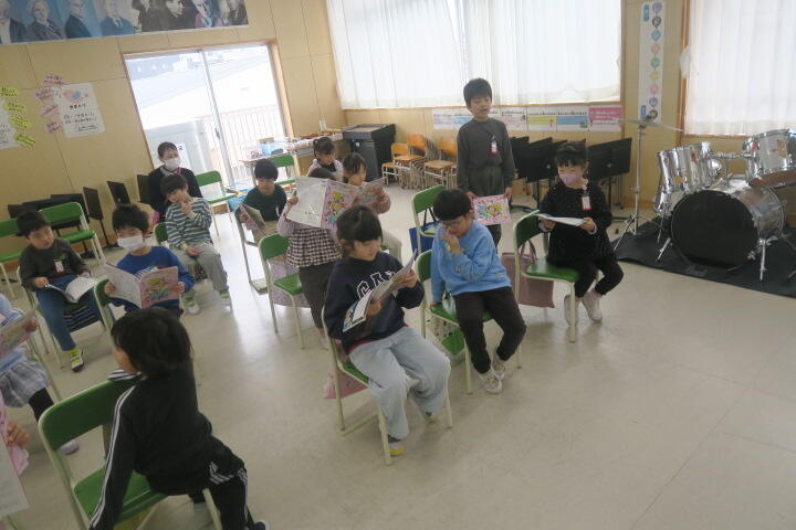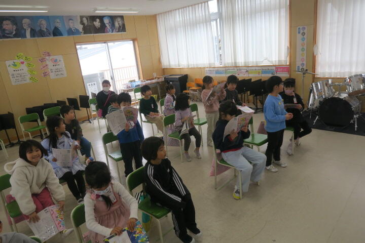 2年生の音楽は6年生を送る会の出し物の詩の練習です。