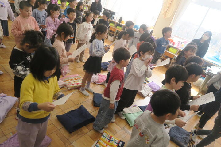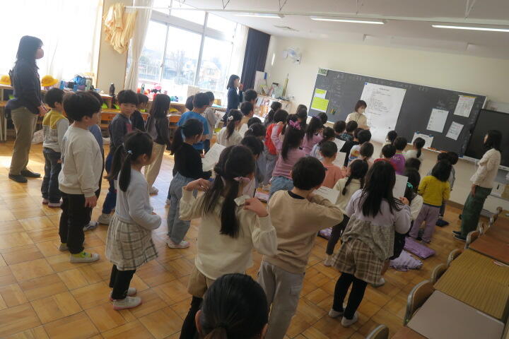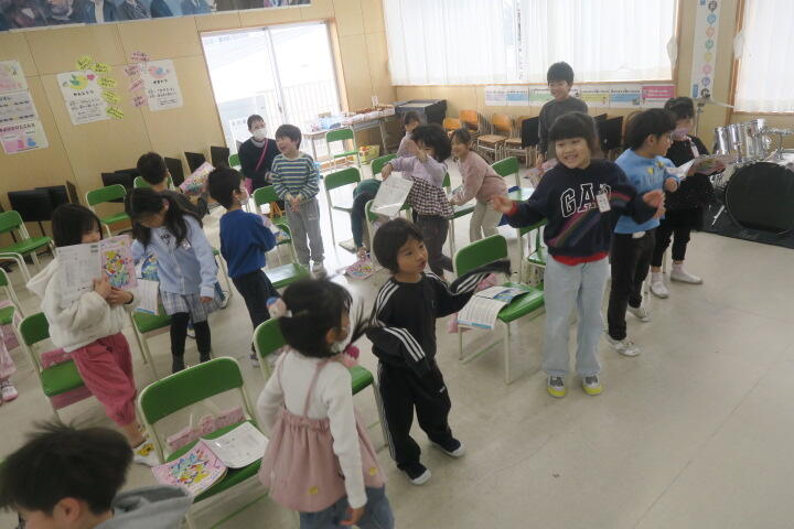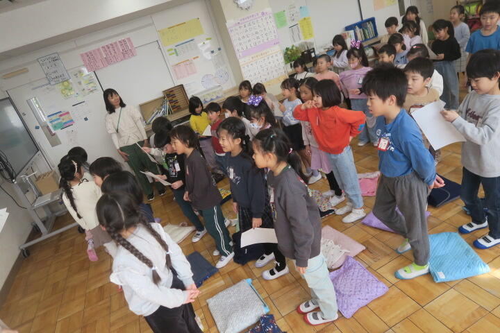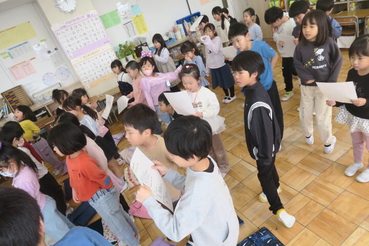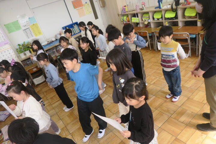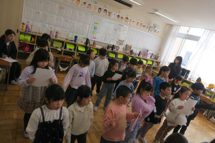 2年生の生活科は6年生を送る会の練習です。