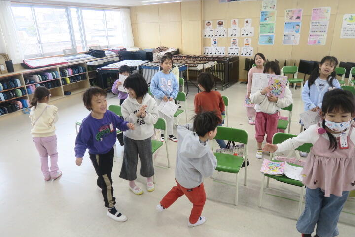 曲の最後に拍手の数だけグループになる遊びも同時に行っていました。