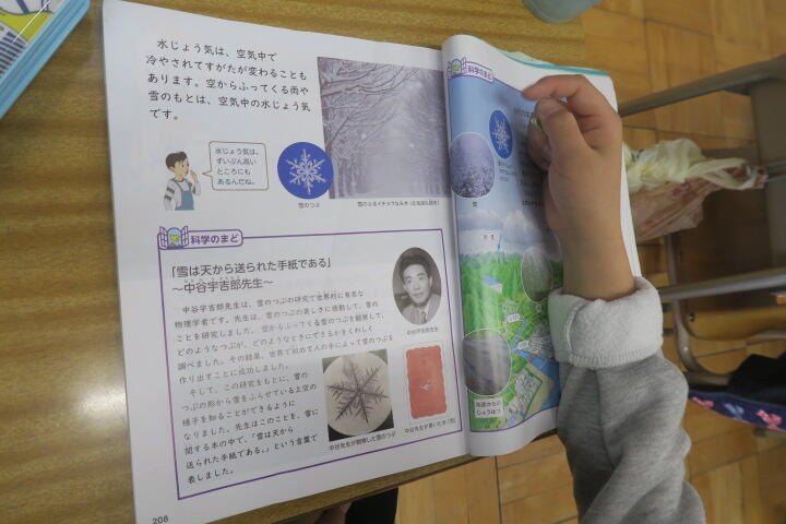 冬についての学習で、教科書で雪の結晶について学習していました。