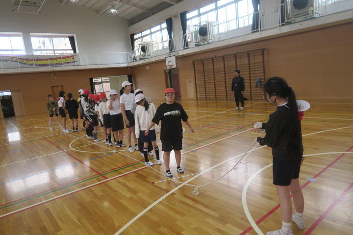 6年生の体育は大縄の練習です。