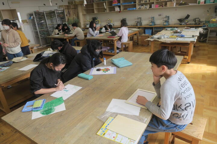 多色刷りの版画の学習です。