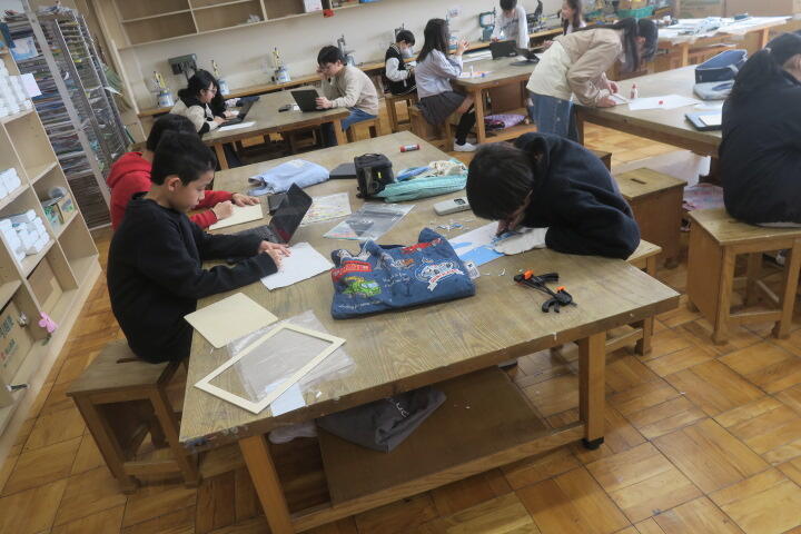 ミシンを使って作品作りをしていました。