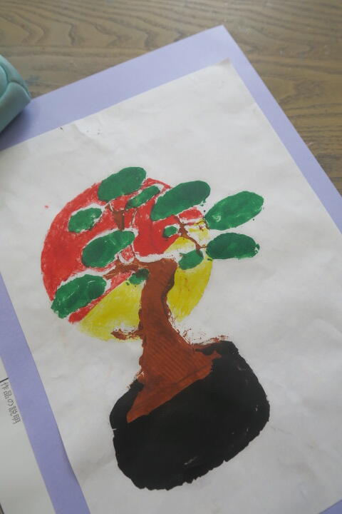 絵の具を使って1年間の思い出を絵に描いていました。