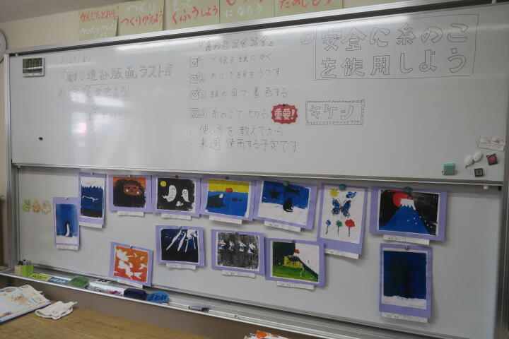 完成した作品が黒板に貼られていました。
