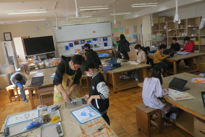 2組の図工は版画の学習の続きです。