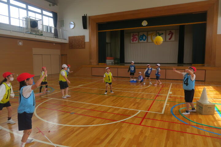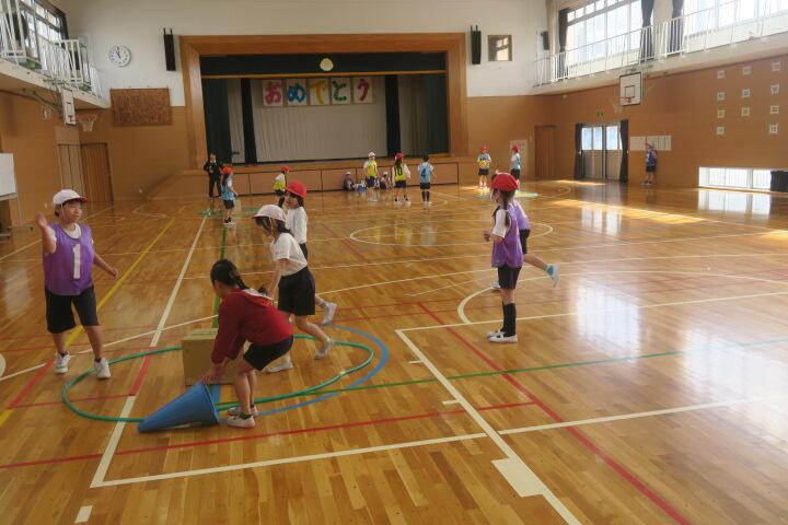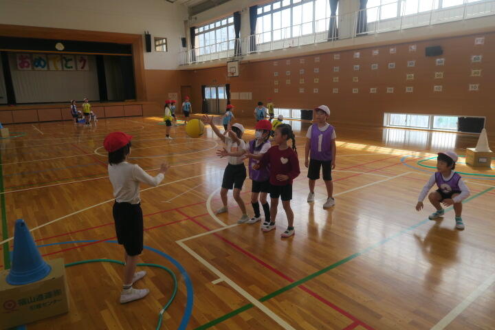 1人一つボールを持ち、的当てやコーン当てなどの運動をしていました。