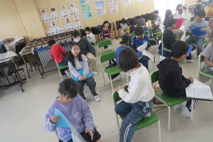 4年生の音楽は合唱「旅立つ君へ」の練習です。