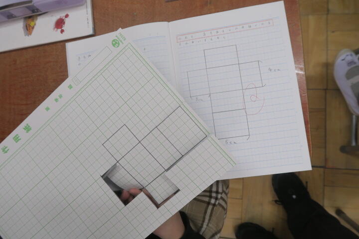 画用紙に立体の展開図を書き、正しいかどうか実際に