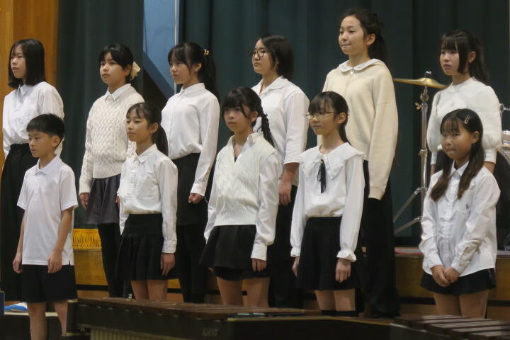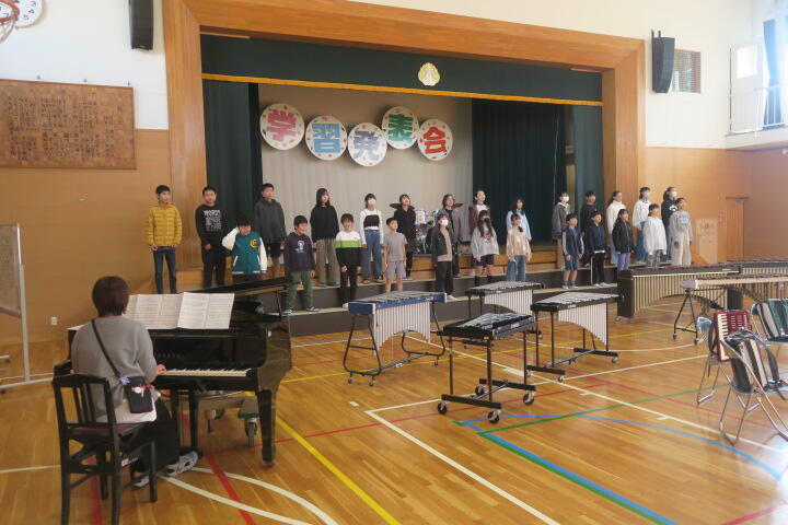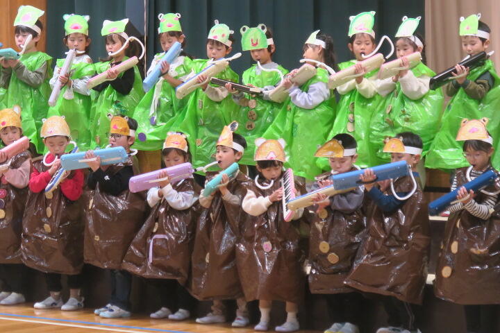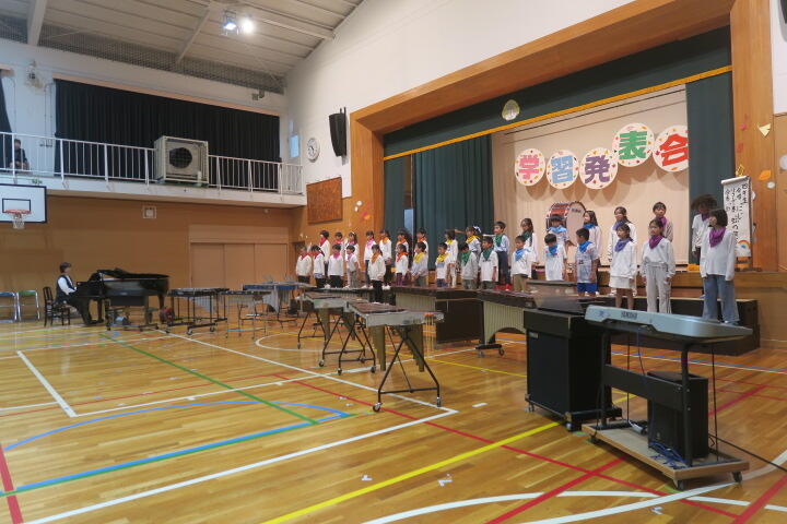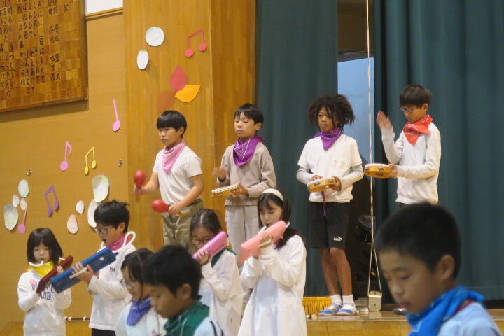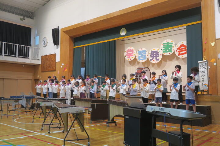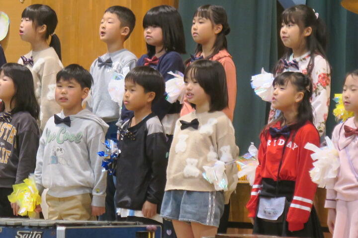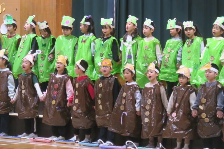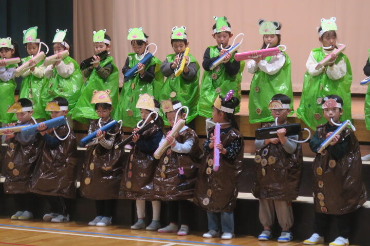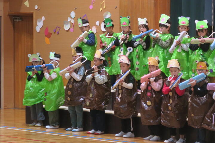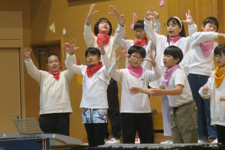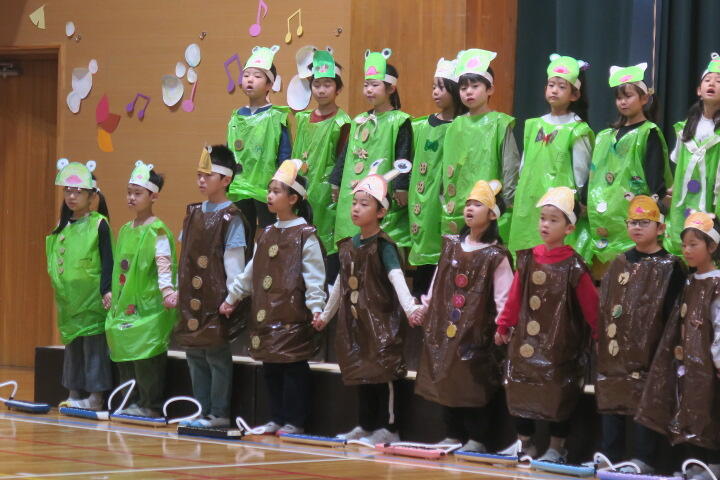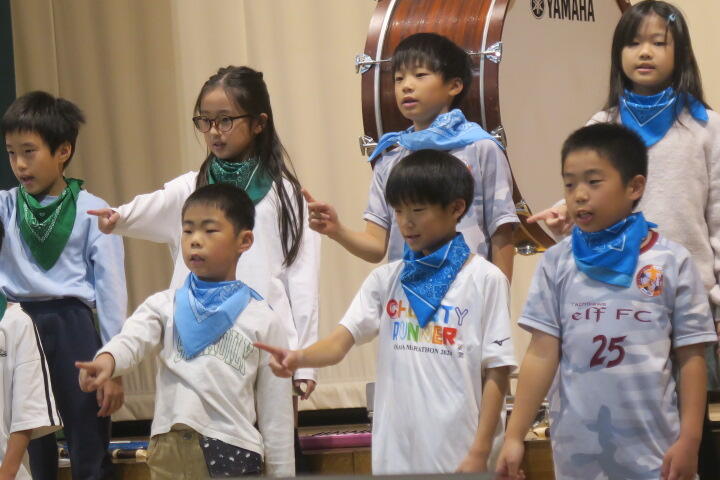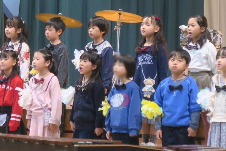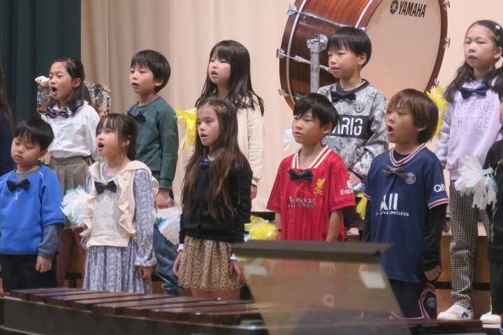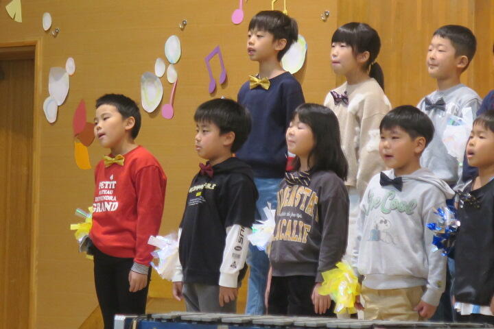 テーマは「思いやり」で元気いっぱいの歌声と初めての合奏を発表しました。