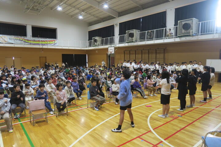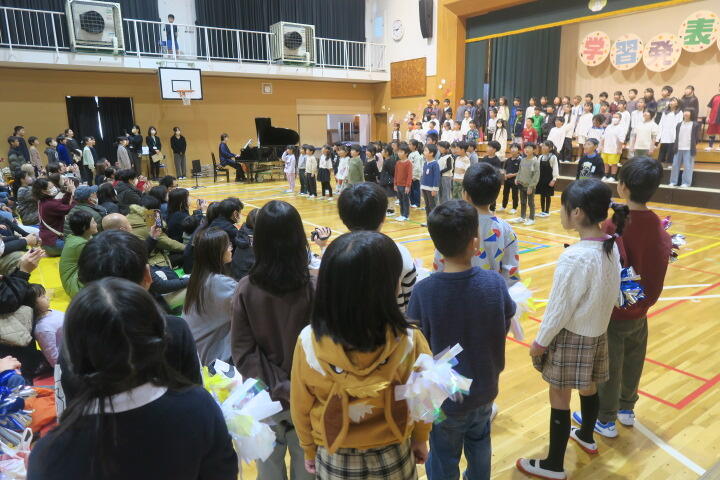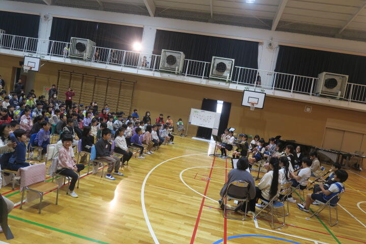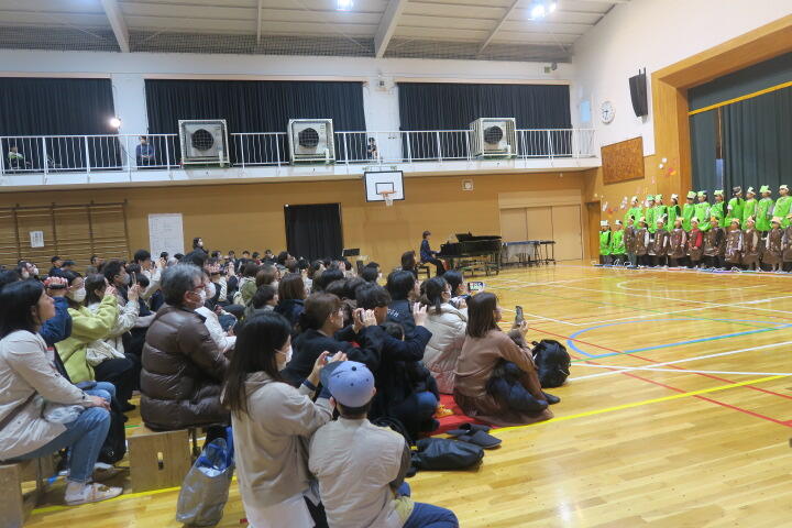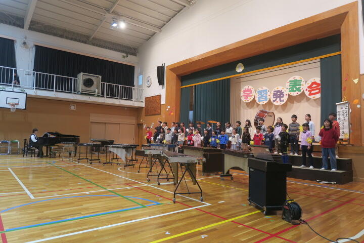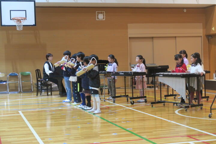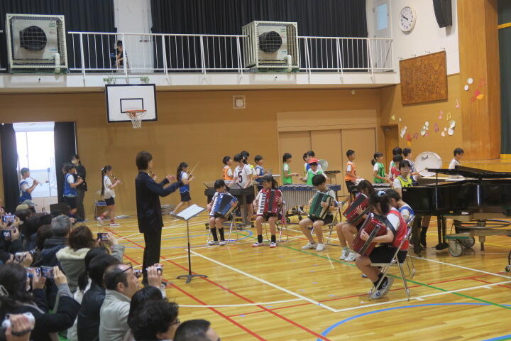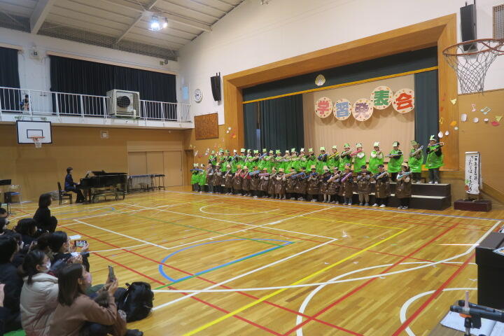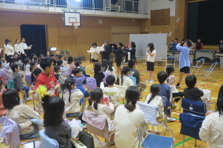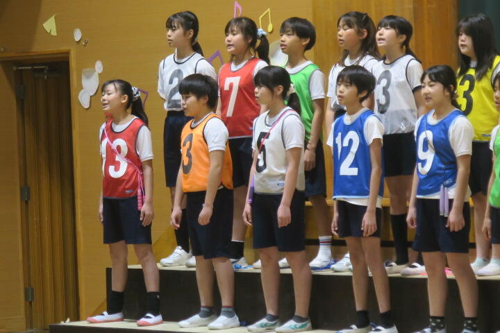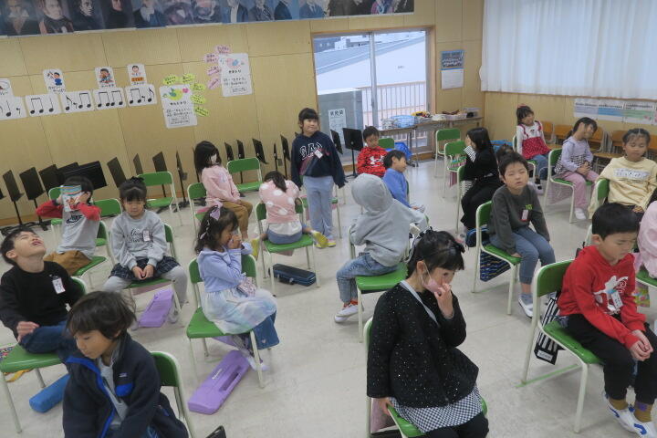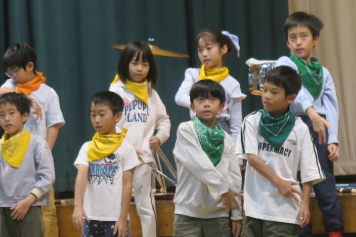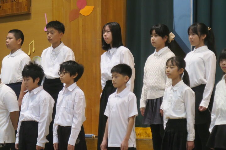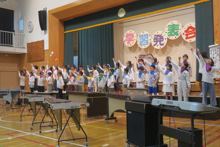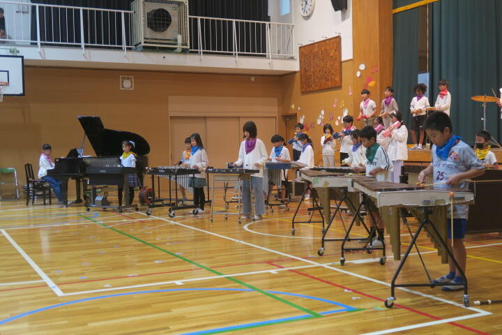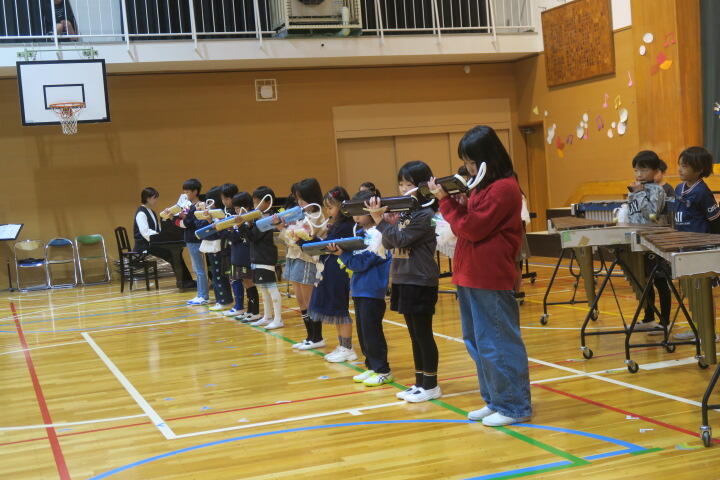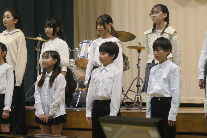 テーマは「思いやり」で元気いっぱいの歌声と初めての合奏を発表しました。