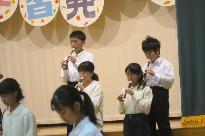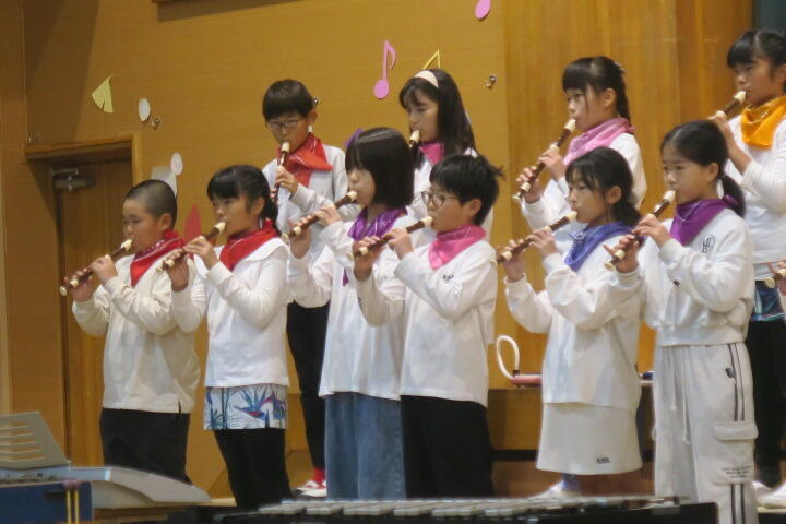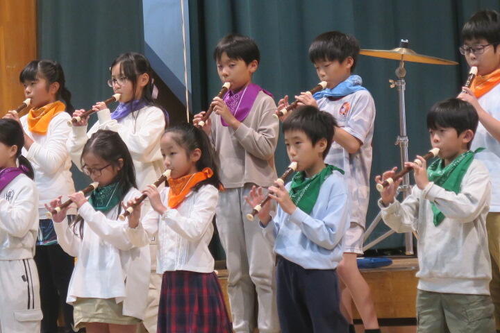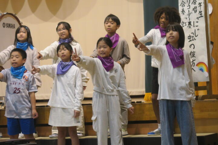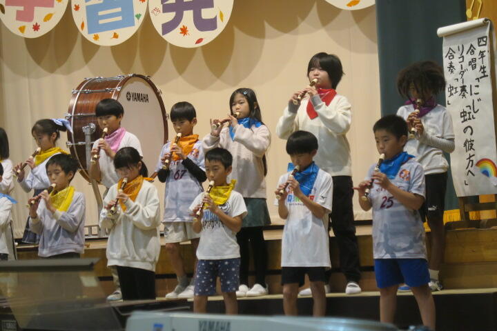 4年生は七色の虹をテーマに、リコーダー奏「虹の彼方へ」合奏「虹」を演奏しました。