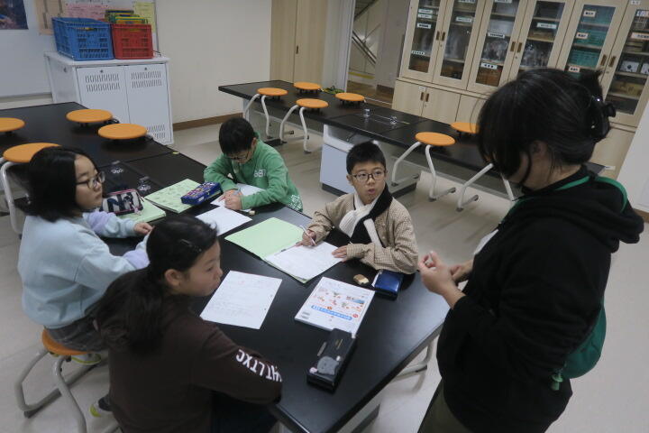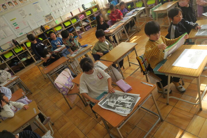 ワークシートを使いながら、文章の読み取りを行っていました。